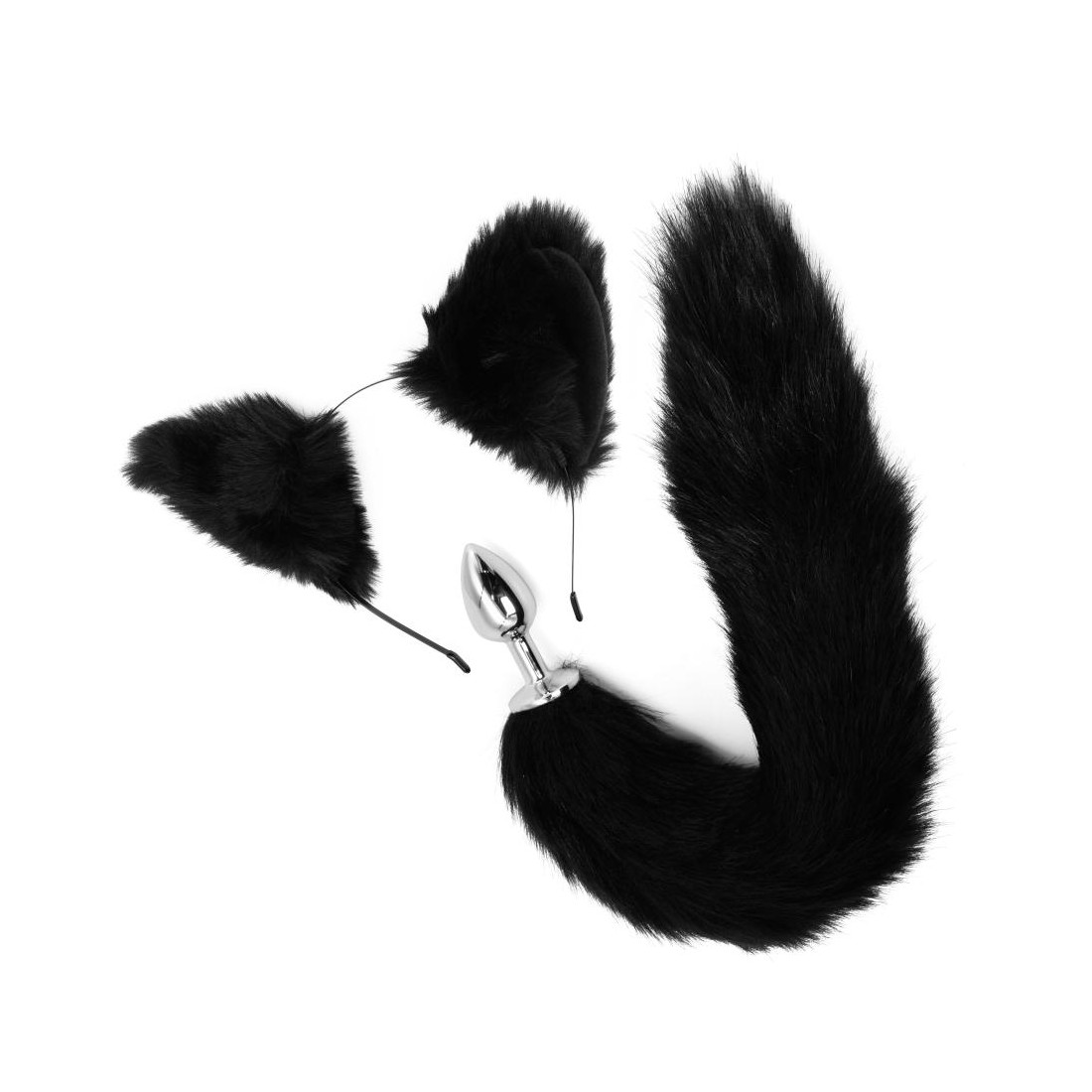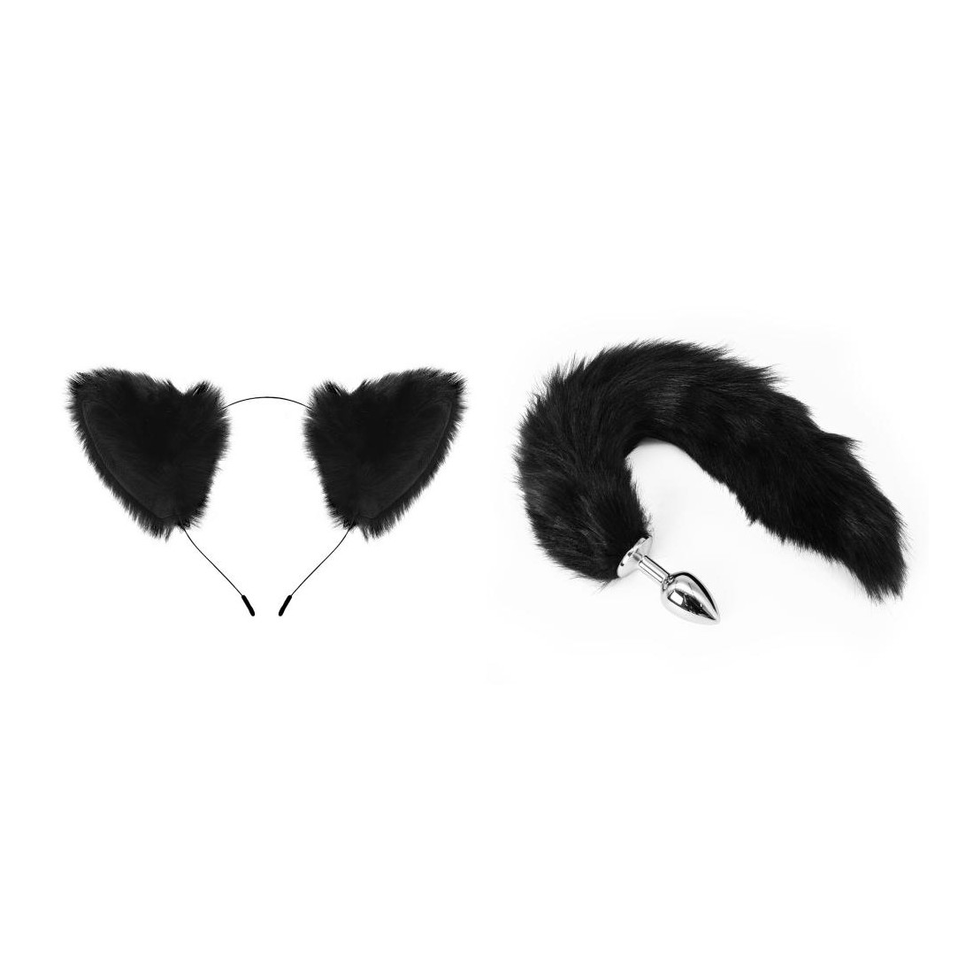 Fantastico set comporto da un cerchietto con le orecchie da gatto e plug con coda nera.