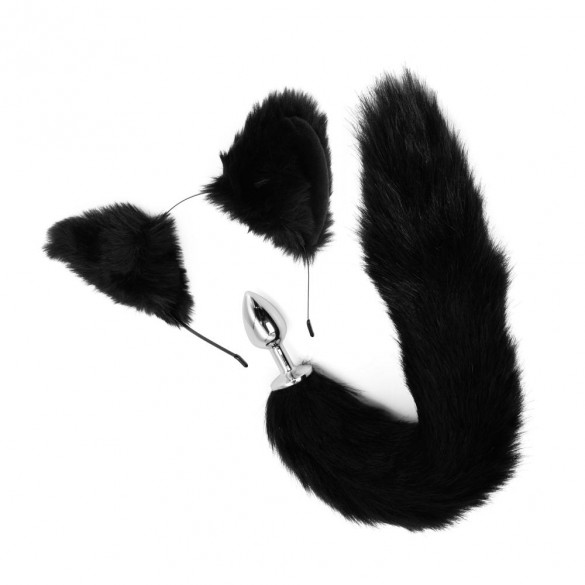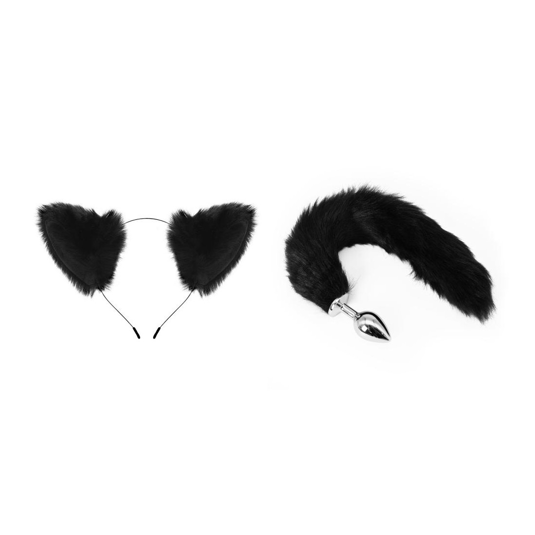 Fantastico set comporto da un cerchietto con le orecchie da gatto e plug con coda nera.