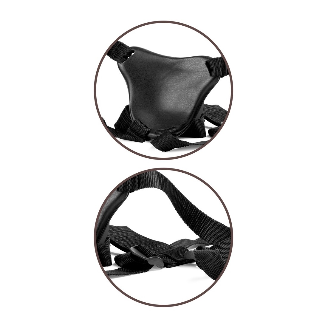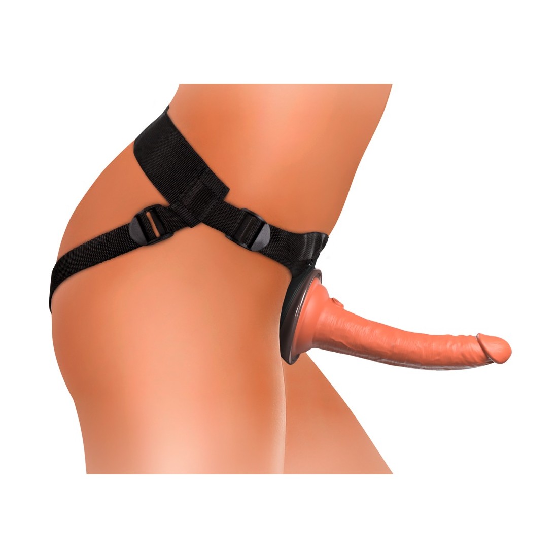 Il semplice sistema strap-on si basa sulla piastra del corpo anatomicamente curva con incavo di aggancio, in cui il piede di aspirazione del dildo è fissato/agganciato a prova di bomba e lo tiene in una posizione di spinta (Push & Play). La piastra del corpo morbidamente imbottita distribuisce la pressione in modo uniforme sulla zona pelvica, in modo da evitare una pressione puntuale e spiacevole. Le robuste cinghie larghe sono regolabili nella vestibilità con cursori in plastica per una vestibilità ferma e confortevole. Qualsiasi altro vibratore/dildo convenzionale con piede a ventosa può anche essere attaccato al/al body dock.