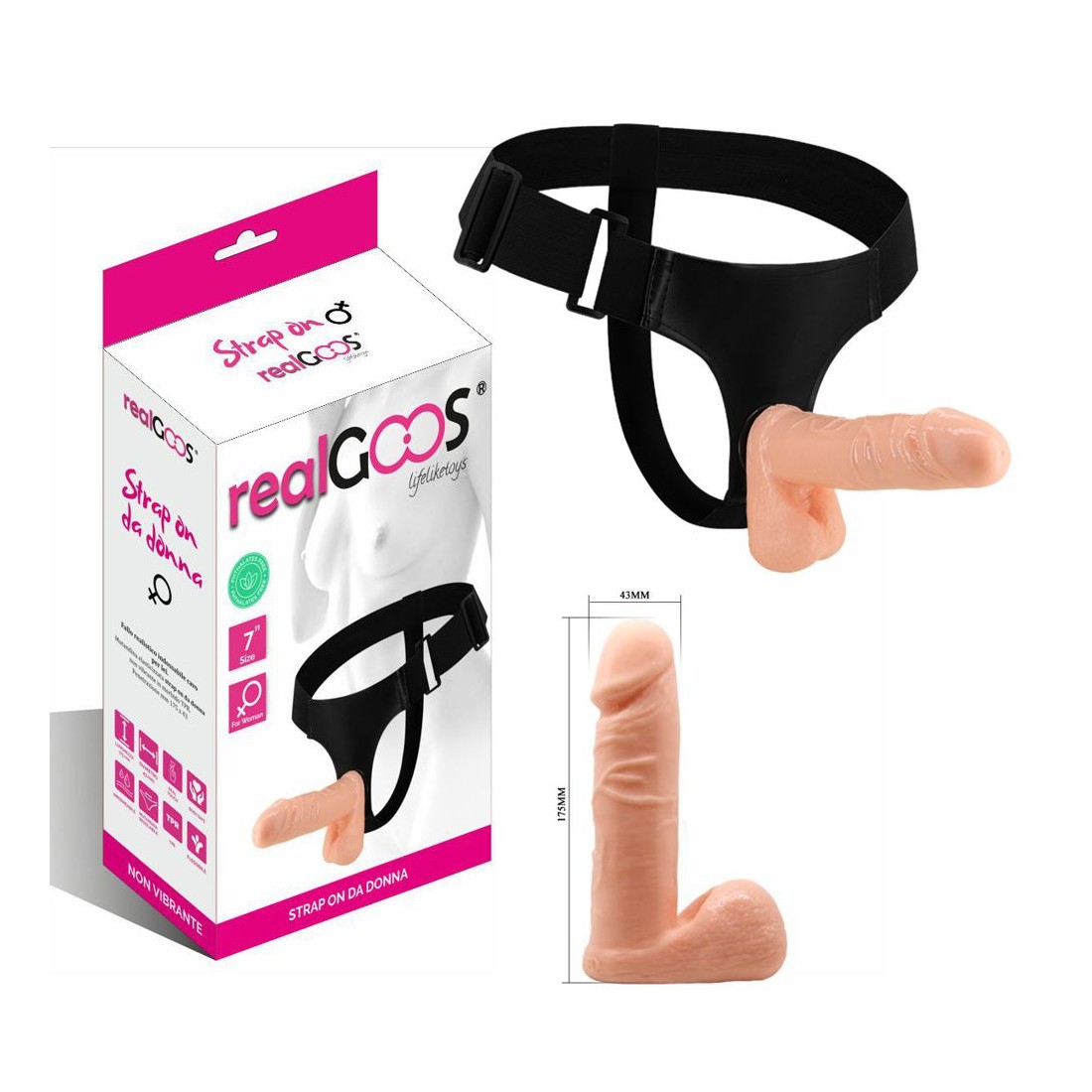 realGOOS® BW-022011 FALLO REALISTICO INDOSSABILE PER LEI STRAP ON DA DONNA NON VIBRANTE IN MORBIDO TPR MM 175 X 43