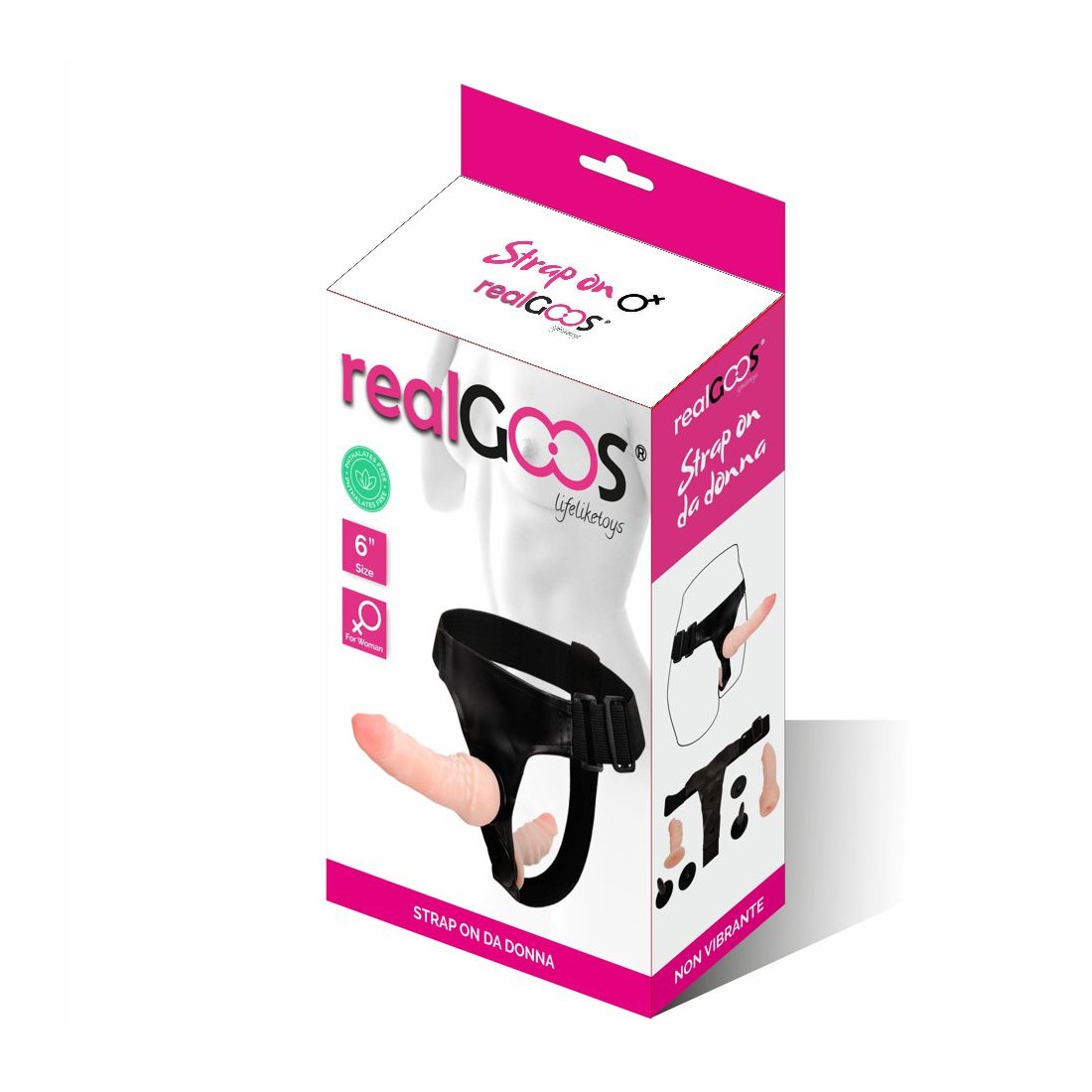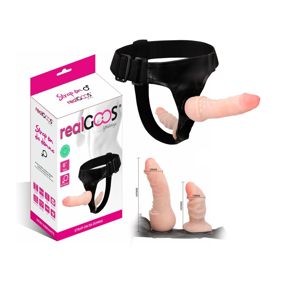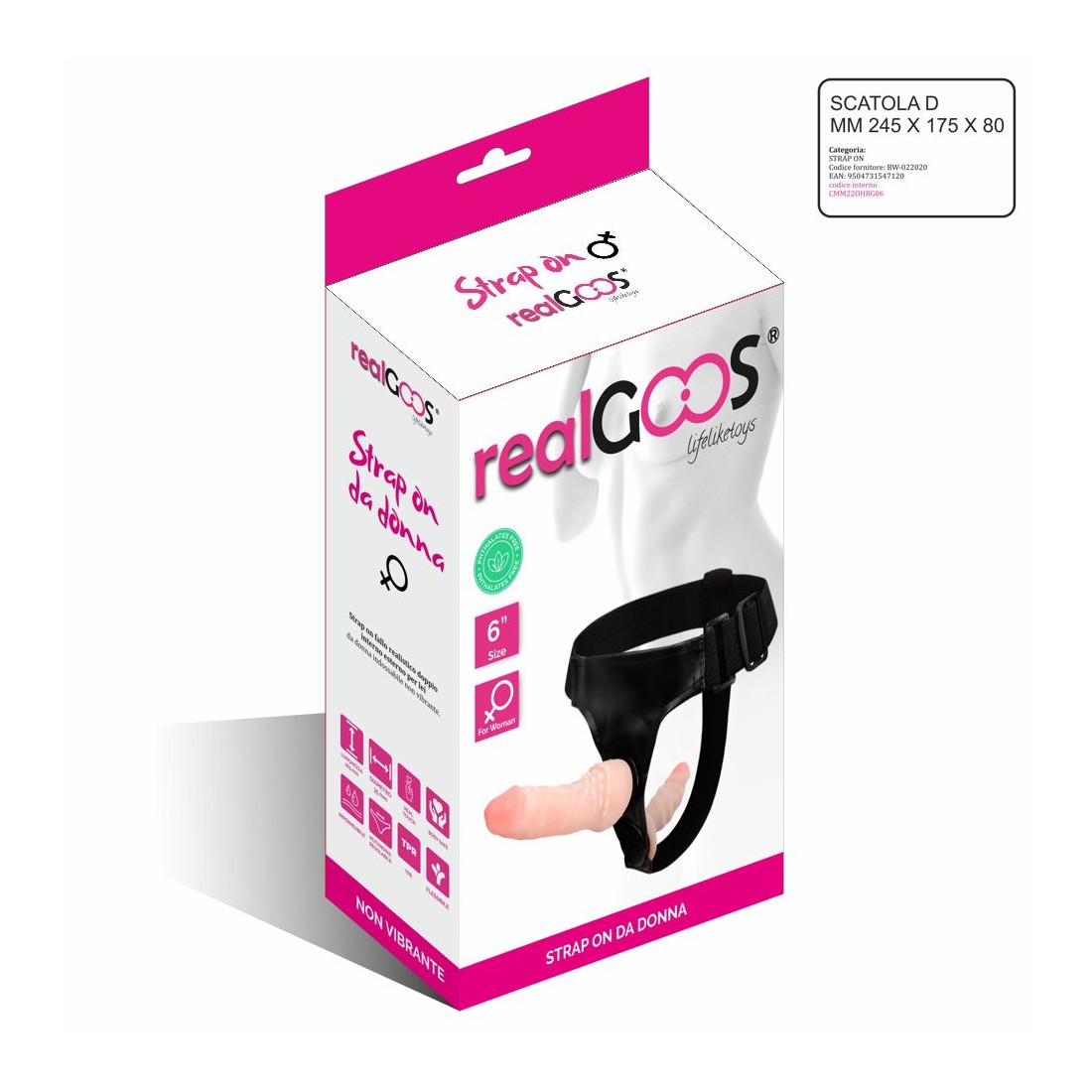 realGOOS® BW-022020 STRAP ON FALLO REALISTICO DOPPIO INTERNO ESTERNO PER LEI DA DONNA INDOSSABILE NON VIBRANTE