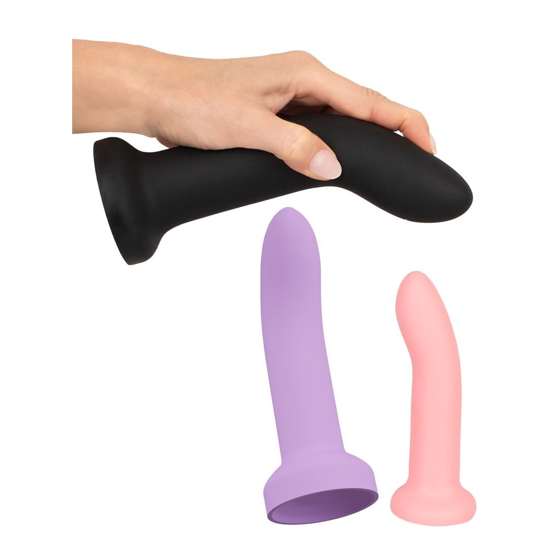 Ogni dildo è realizzato in silicone liquido con una superficie ultra morbida. Piacevolmente solido e allo stesso tempo meravigliosamente flessibile. La curvatura ideale consente di raggiungere facilmente il punto G o la prostata e di stimolarli in modo mirato. Ciascuno di essi è dotato di una forte ventosa che aderisce saldamente e in modo sicuro a qualsiasi superficie liscia per un piacere a mani libere. Disponibile in 3 diversi colori e dimensioni: