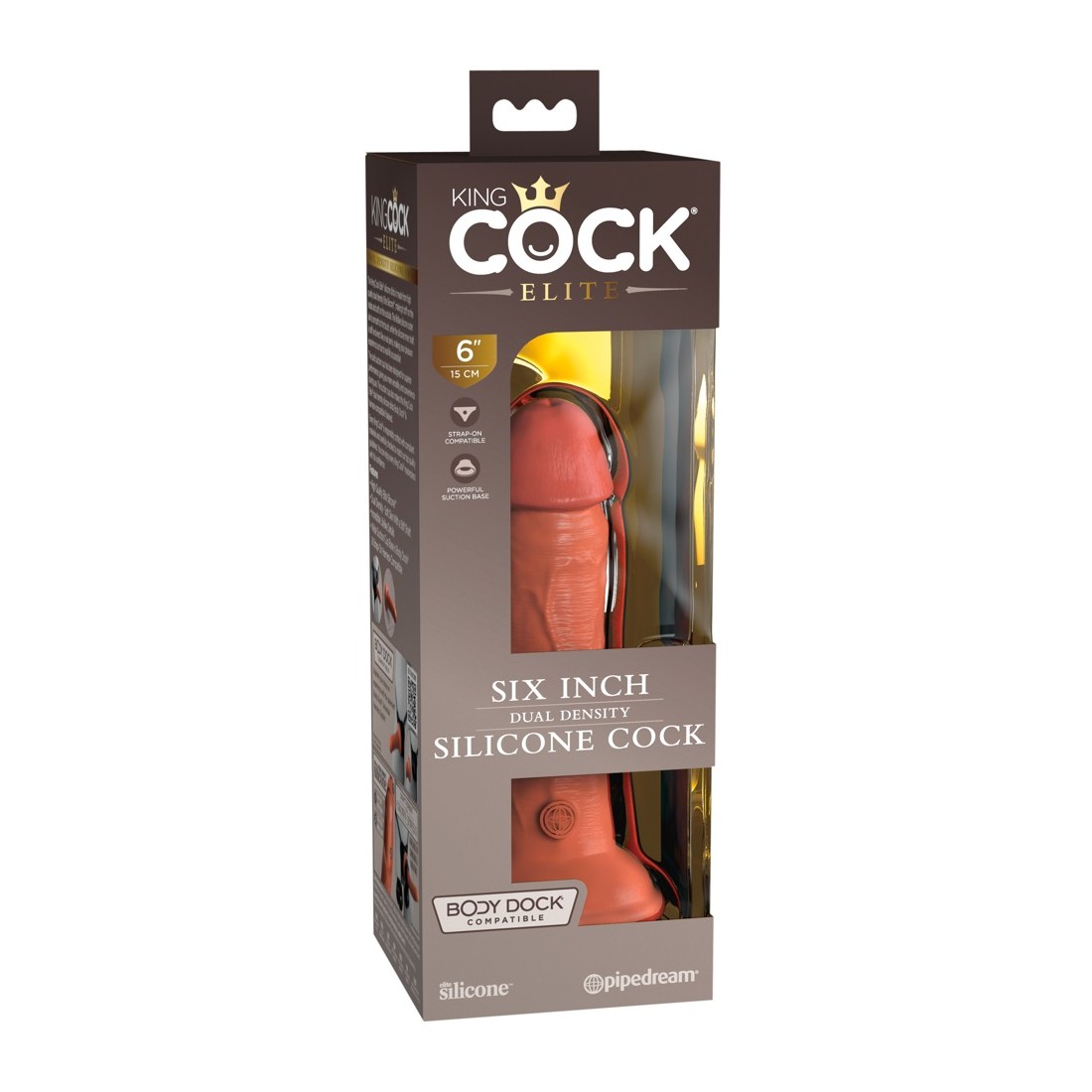 Splendido dildo 6" Dual Density Silicone Cock di King Cock Elite in look iper-realistico del pene fatto di materiale siliconico a doppia densità che si sente come la vera pelle. Il dildo stesso ha un'asta ferma, ma flessibile che assume qualsiasi posizione.