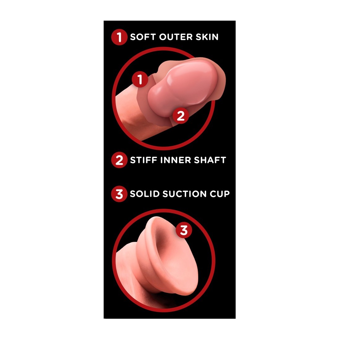 Splendido dildo dal look iper-realistico del pene realizzato in materiale Fanta Flesh a tripla densità (3D) che sembra pelle vera. Il punto culminante sono i testicoli replicati in modo realistico con le palle all'interno, che oscillano ad ogni spinta e spingono in modo eccitante contro la zona intima. Il dildo stesso ha un'asta ferma ma flessibile che può essere usata in qualsiasi posizione. Sotto i testicoli aderenti, il dildo ha una forte base di aspirazione che si attacca saldamente e in modo sicuro a qualsiasi superficie liscia per un uso senza mani. Inoltre, il dildo è compatibile con gli strap-on e gli orinatoi.