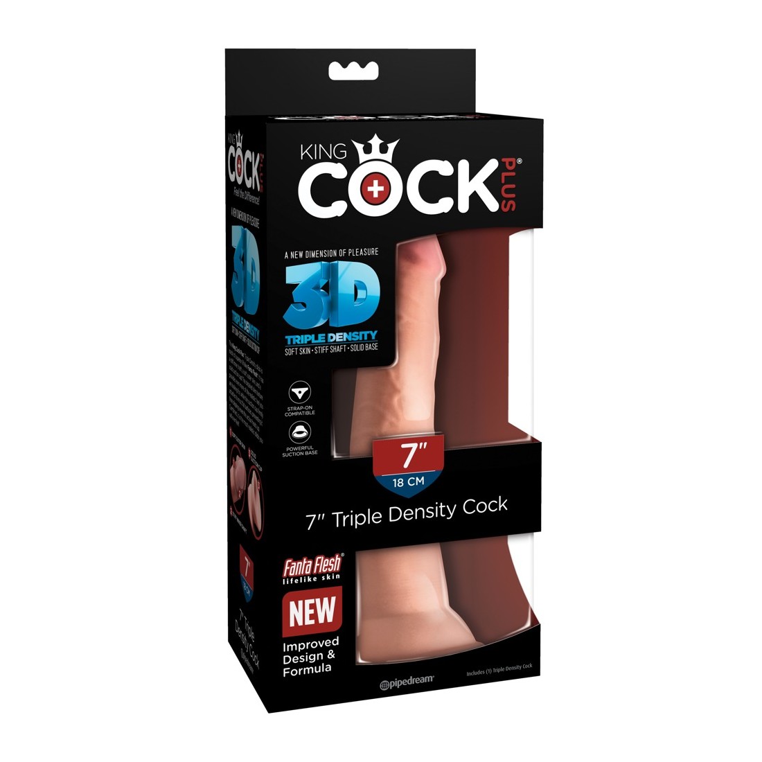 Questo dildo realistico 7" Triple Density Cock di King Cock Plus ha un nucleo duro e una superficie particolarmente morbida. Così ci si sente proprio come l'originale. La superficie è disegnata in modo realistico con un glande pronunciato e delle venature. Il buon pezzo ha una pratica base a ventosa per giri a mani libere ed è compatibile con gli strap-on.