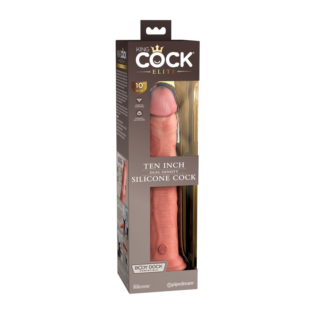 Splendido dildo 10" Dual Density Silicone Cock di King Cock Elite in look iper-realistico del pene fatto di materiale siliconico a doppia densità che si sente come la vera pelle. Il dildo stesso ha un'asta ferma, ma flessibile che assume qualsiasi posizione.