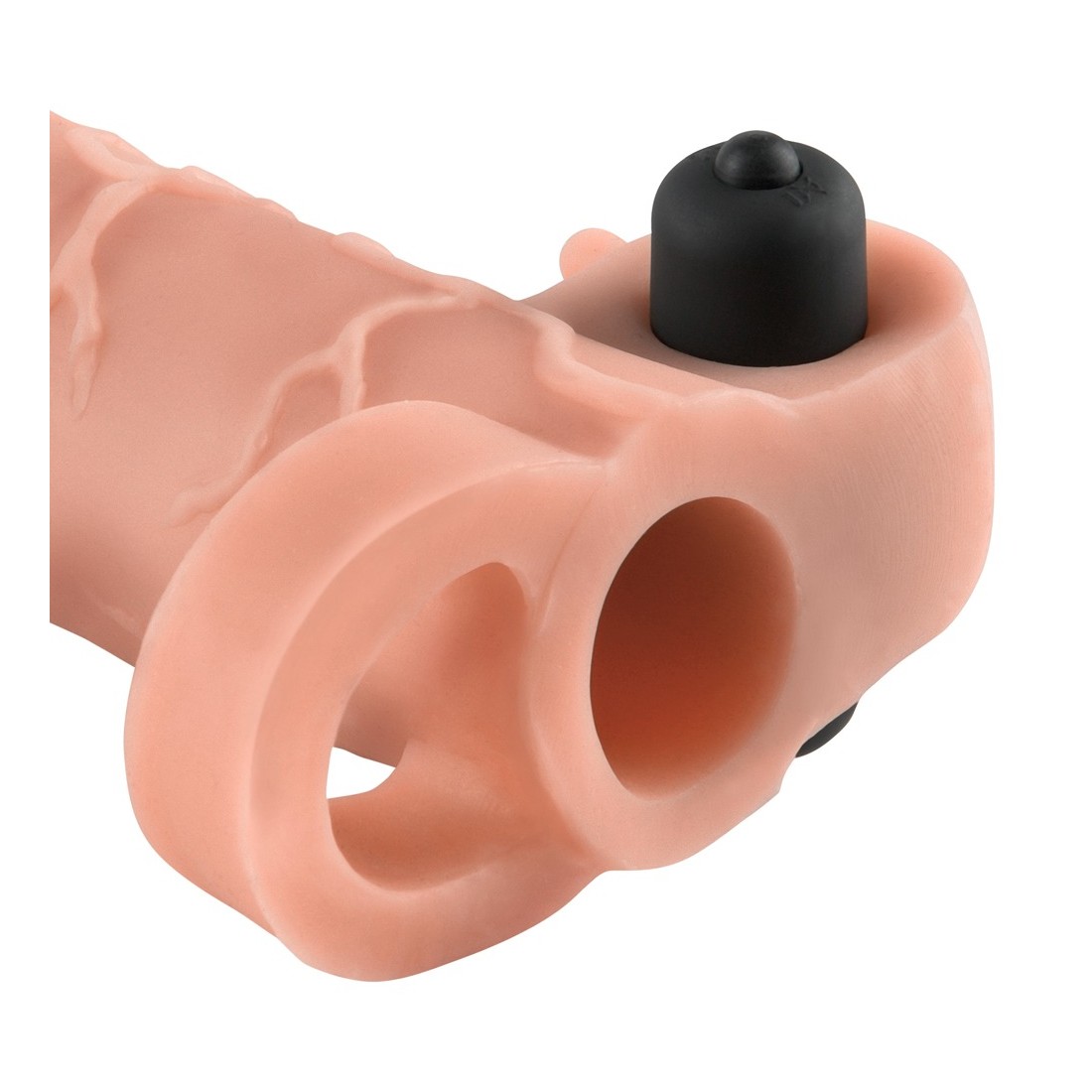 Questo copripene in materiale elastico morbido e simile alla pelle (Fanta Flesh) mette il pene in ottima forma per soddisfare i momenti di lussuria. La copertura aderente, che sostiene l'erezione, viene semplicemente fatta scivolare sul pene eretto e, grazie all'anello per testicoli, garantisce una calzata salda e confortevole senza scivolare. Grazie al magnifico diametro esterno, il pene è più grande del 33% in circonferenza. E il glande massiccio è allungato di 2,5 cm! Il piccolo e potente vibro proiettile è inserito nell'anello superiore e fornisce un'eccitante stimolazione aggiuntiva. Anche nella vasca da bagno o nella doccia, perché è impermeabile! Batteria inclusa (3 x LR44) per il vibro proiettile.