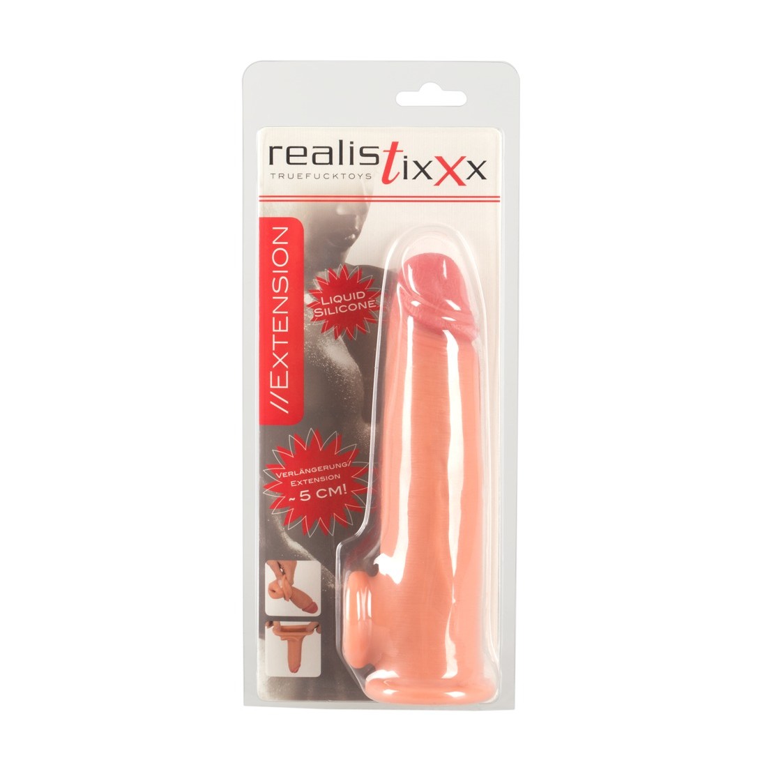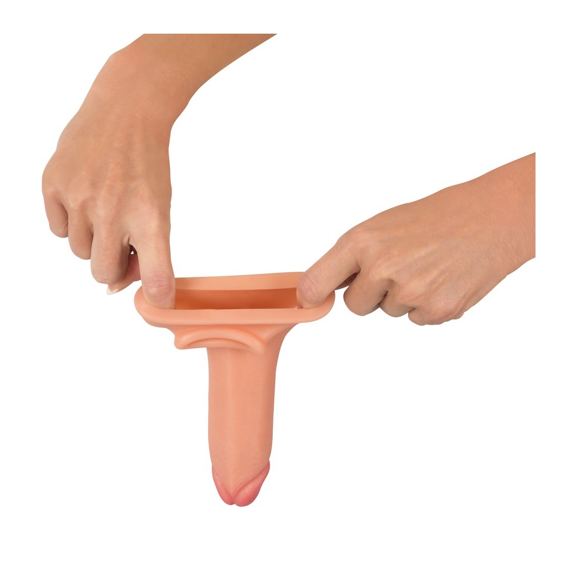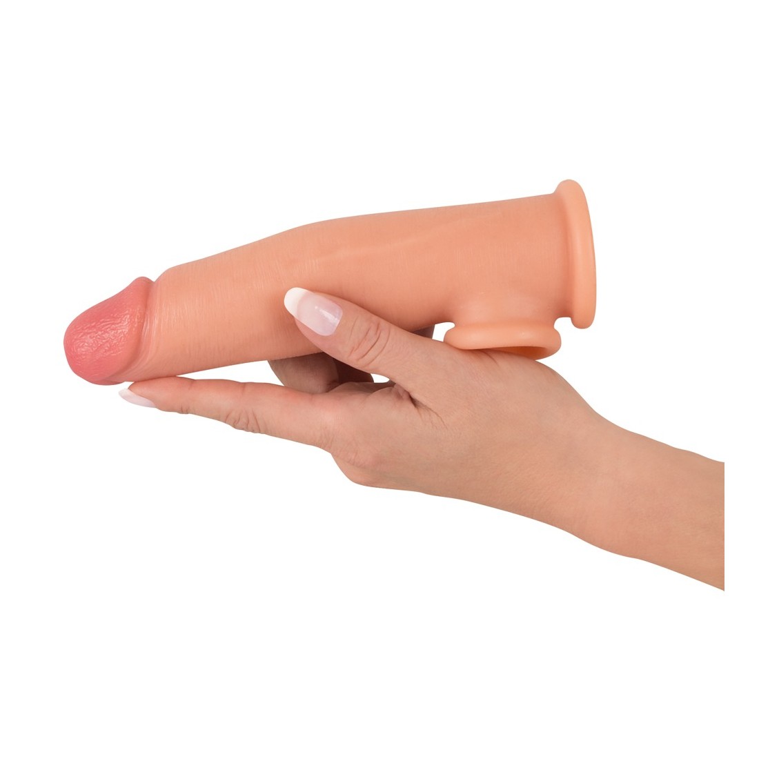 Guaina per il pene dal design naturale per ingrandire ed estendere il pene di 5 cm. La guaina realistica impressiona con il suo materiale particolarmente morbido e il glande pronunciato e le leggere venature sull'asta. Un'apertura per i testicoli fornisce una presa particolarmente sicura.