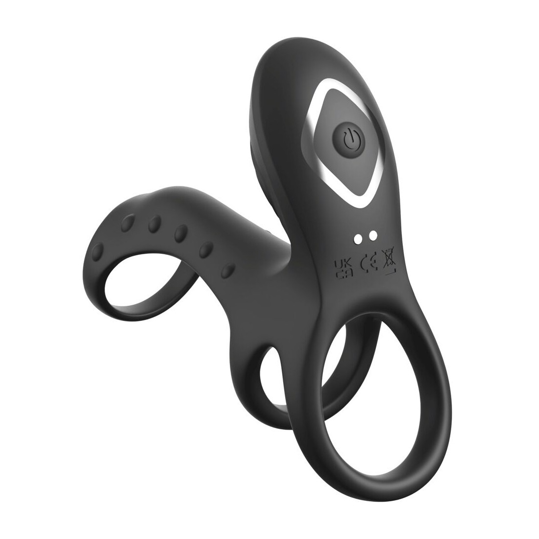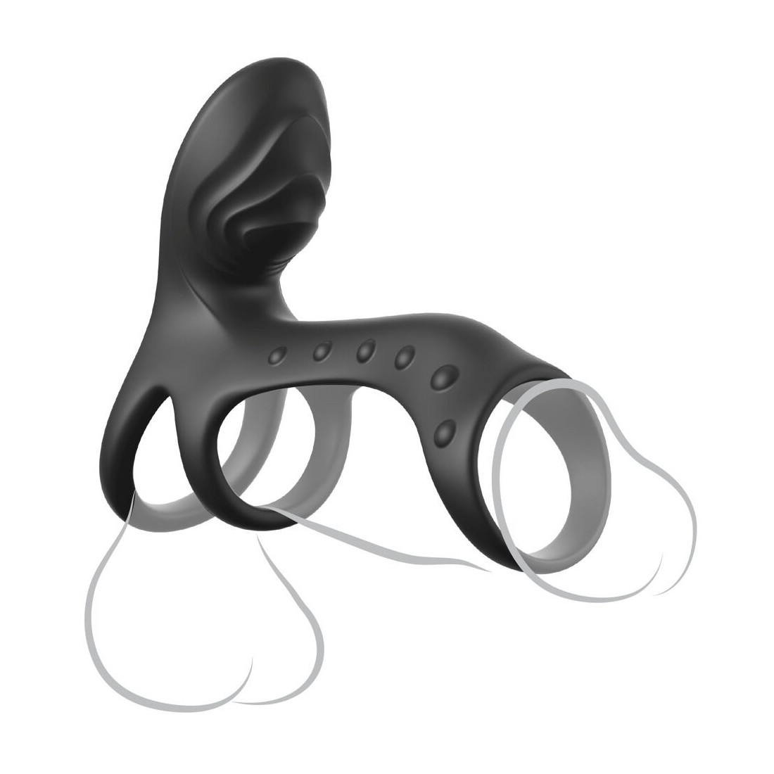 Guaina fallica con anello per testicoli e vibrazione a 2 motori su clitoride e punto G