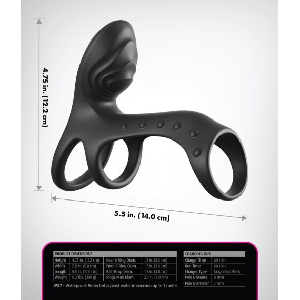 Grazie al silicone morbido ed elastico, il bracciale e gli anelli sono facili da indossare e si adattano perfettamente. L'elevata flessibilità garantisce che le potenti vibrazioni doppie vengano percepite intensamente ad ogni movimento. Massimo comfort e piacere!