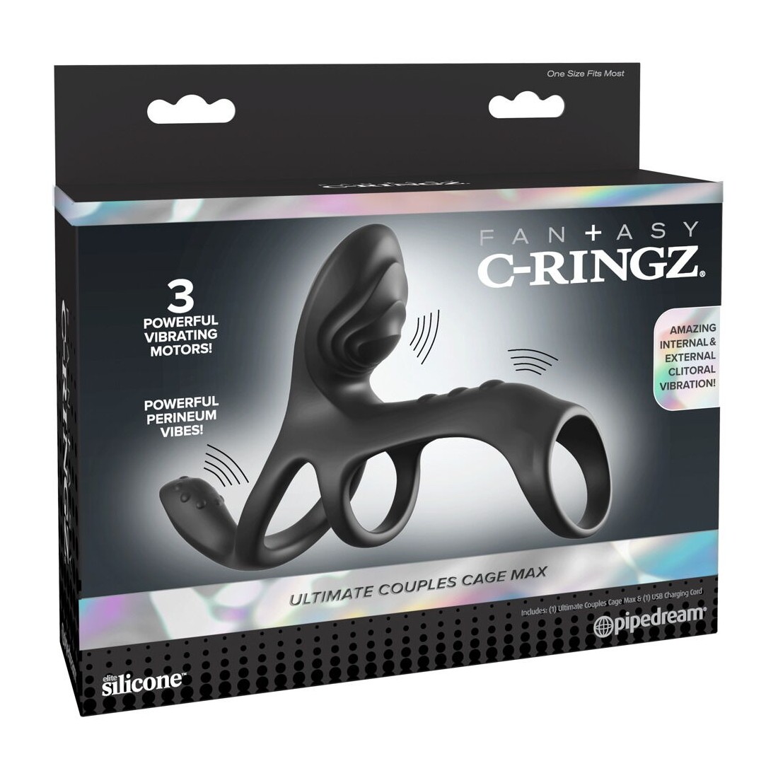 L'Ultimate Couples Cage Max di Fantasy C-Ringz coccola entrambi durante il sesso con intense vibrazioni. La guaina a coste del pene non solo stimola il clitoride con forti vibrazioni, ma coccola anche il glande e il perineo con vibrazioni. I due anelli per il cazzo elasticizzati garantiscono una presa salda e sostengono in modo affidabile l'erezione, in modo che il piacere duri particolarmente a lungo. Inoltre, l'anello per testicoli garantisce una tenuta sicura e antiscivolo della guaina, anche durante i rapporti amorosi più sfrenati. Questo permette a entrambi di sperimentare insieme nuovi climax e variegati momenti di piacere.