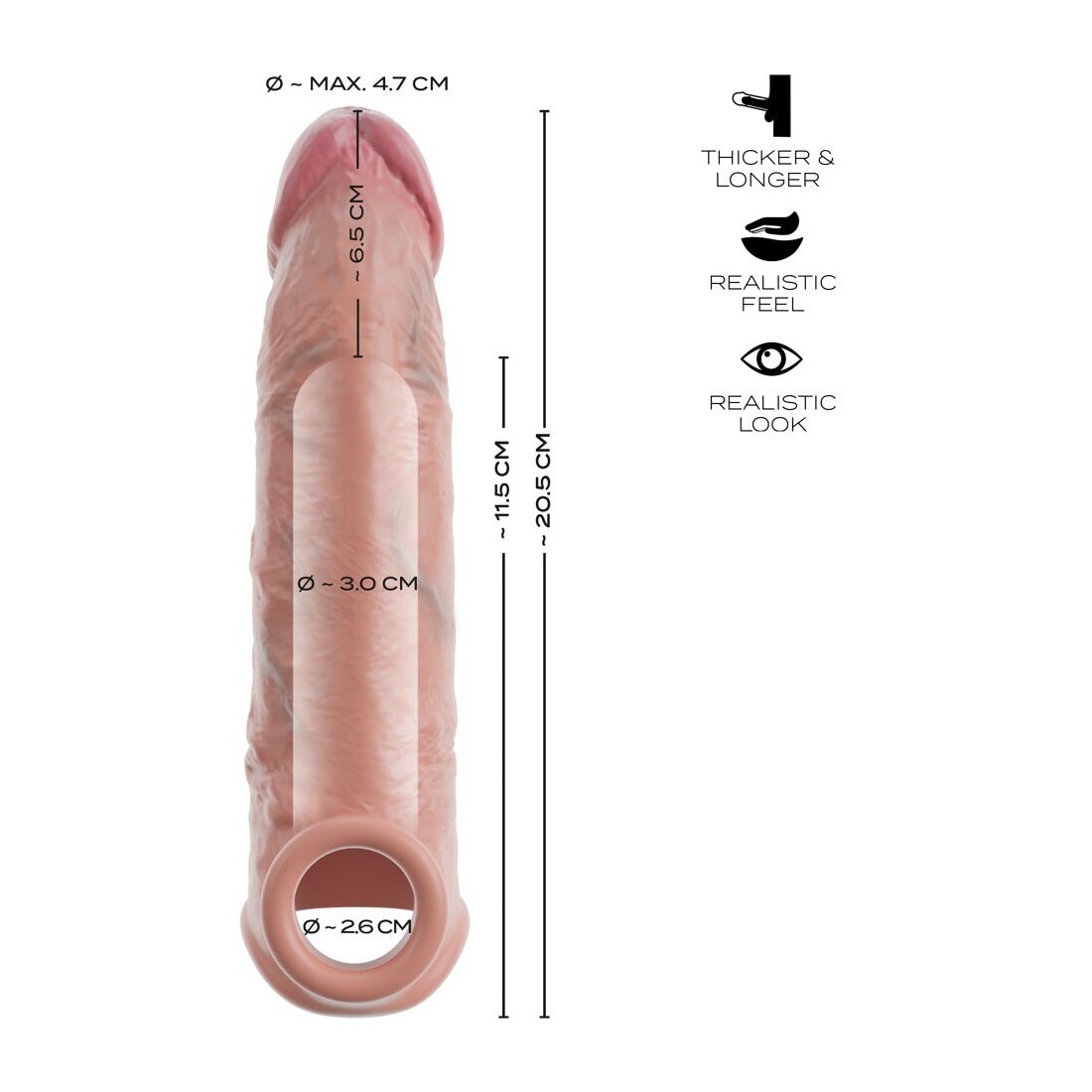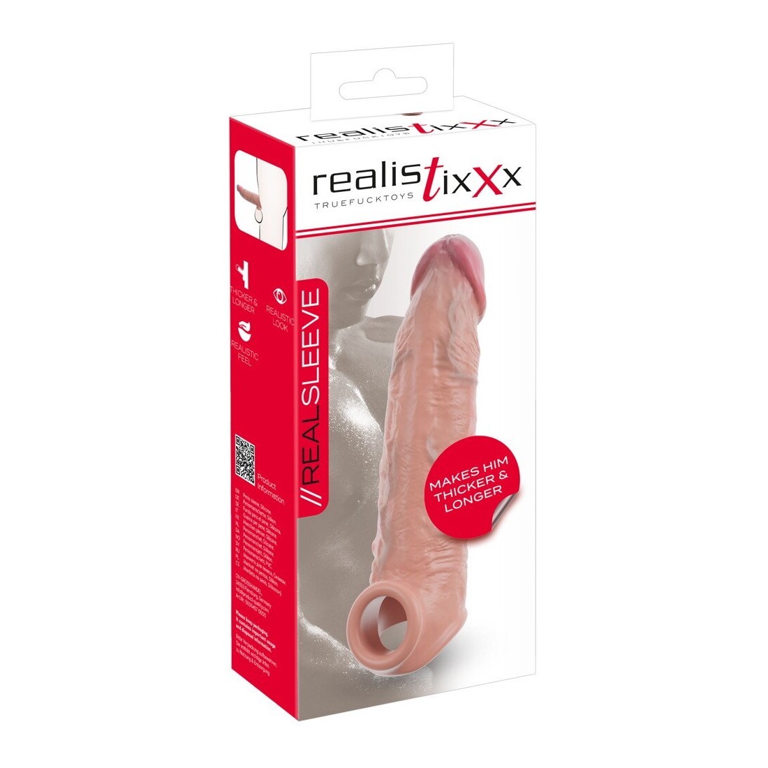 Il RealSleeve Extension di Realistixxx porta il pene in forma rapida e semplice per intensi momenti di piacere. Grazie alla punta imbottita e morbida, il pene si allunga di ben 6,5 cm e lo spessore del materiale aumenta sensibilmente la circonferenza. Per un divertimento sessuale completo e realistico che vi ecciterà fino all'ultimo centimetro!