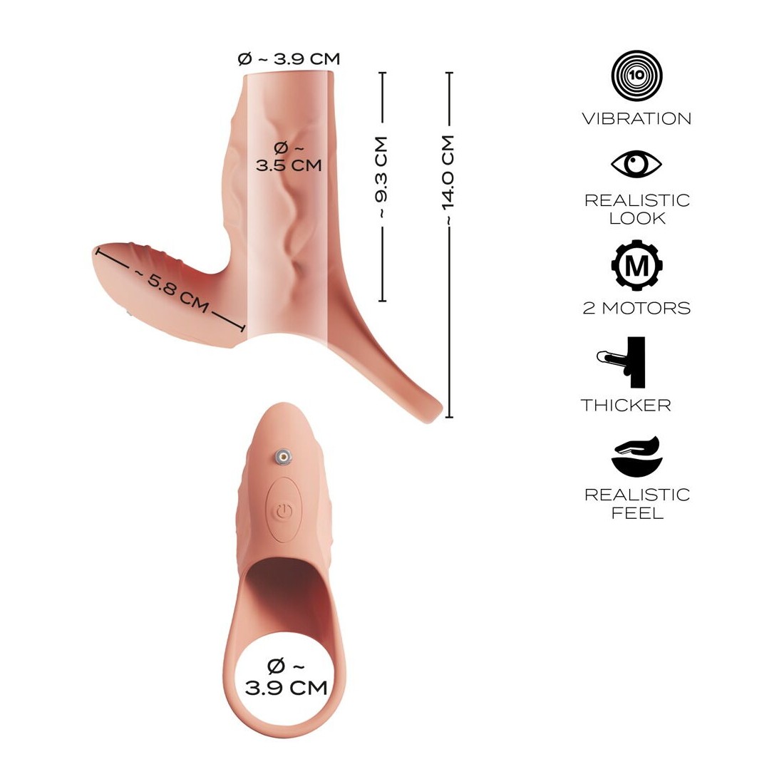 Realizzata in silicone morbido e setoso con sottili venature, la guaina del pene colpisce per il suo aspetto estremamente realistico e per la sua sensazione di morbidezza e di vita. Elastica in ogni sua parte, si adatta perfettamente a qualsiasi pene e ne aumenta sensibilmente la circonferenza grazie allo spessore del materiale. Il solleticatore clitorideo flessibile si adatta a ogni movimento e le sue scanalature pronunciate trasmettono le vibrazioni hotspot in modo particolarmente mirato e intenso.