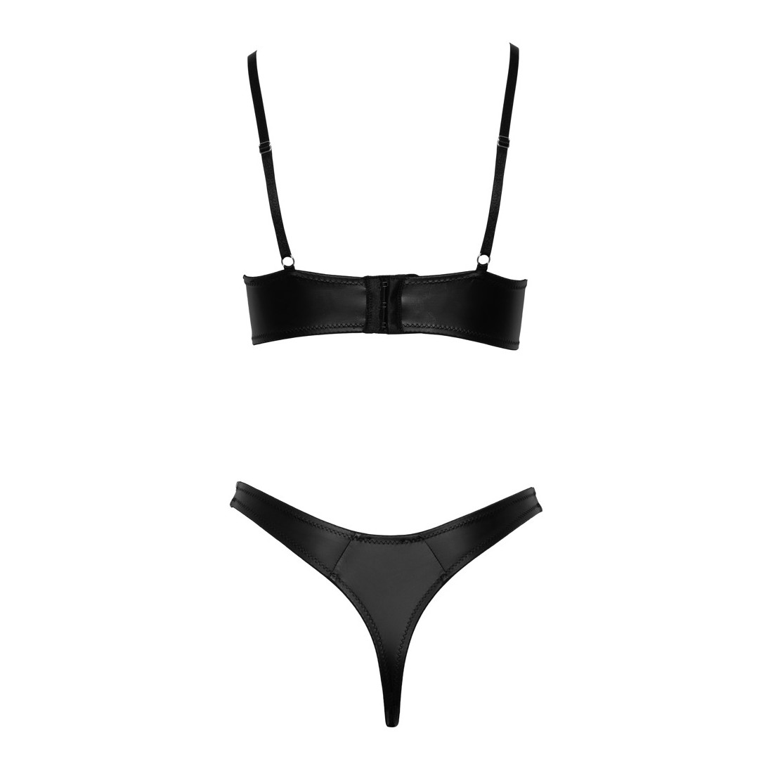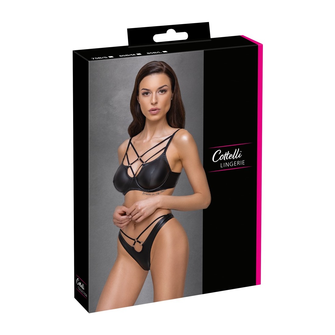 Reggiseno con ferretto e riostringente in un set di Cottelli LINGERIE. Elegante look nero opaco con dettagli decorativi di cinghie elastiche e anelli argentati sul décolleté e sulla cintura anteriore a stringa. Elastico dappertutto per una vestibilità comoda e aderente. Reggiseno con spalline regolabili e chiusura a gancio sulla schiena.