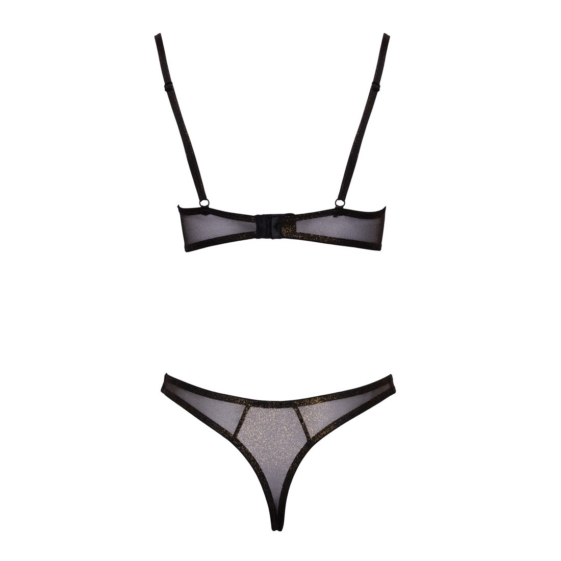 Set reggiseno e reggiseno con ferretto di Cottelli LINGERIE in rete fine nera con glitter color oro. Elasticizzato su tutta la superficie per una vestibilità comoda e aderente. Reggiseno con coppe preformate senza ferretto - non si vede nulla sotto gli abiti attillati. Le spalline e la chiusura a gancio sul retro sono regolabili per una vestibilità perfetta.