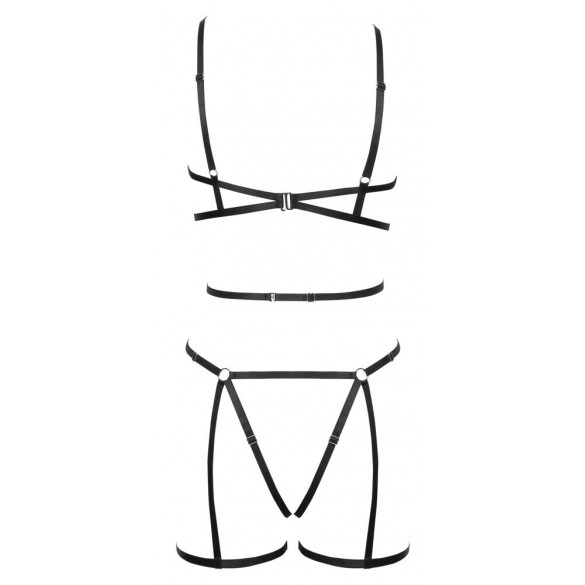 Set di imbracature nere a 3 pezzi con imbracatura per il seno e per i fianchi, compreso un piccolo perizoma. UNICA