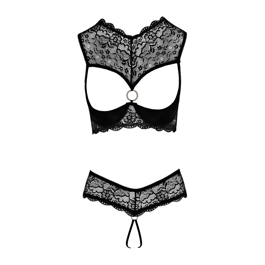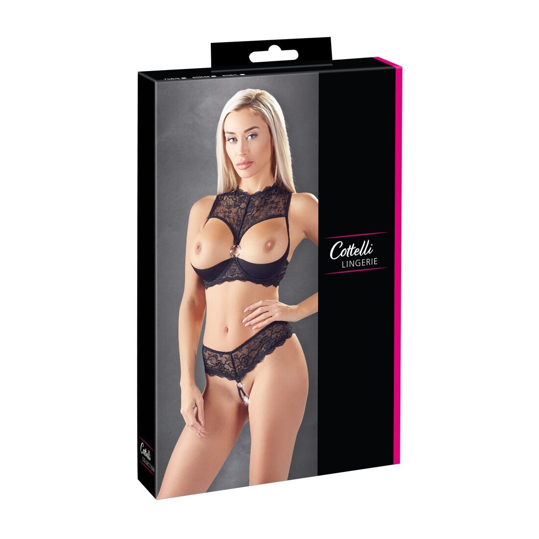 Reggiseno aperto con coppe imbottite e perizoma aperto nell'inguine L