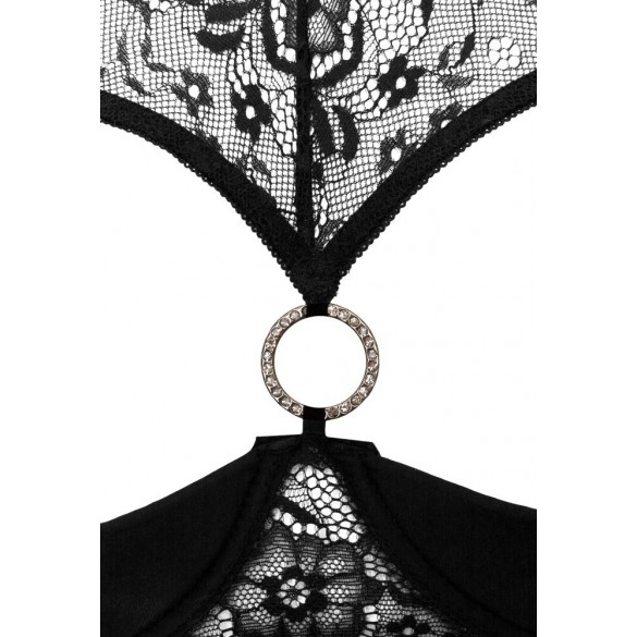 Questa bella Ebe forma il seno e lo mette in scena. Le coppe leggermente imbottite sollevano il seno e il pizzo incornicia questa vista, mentre l'anello luccicante dirige lo sguardo verso le cose più importanti. Il perizoma è inguine aperto, con orlo in pizzo e fasce flessibili.