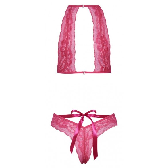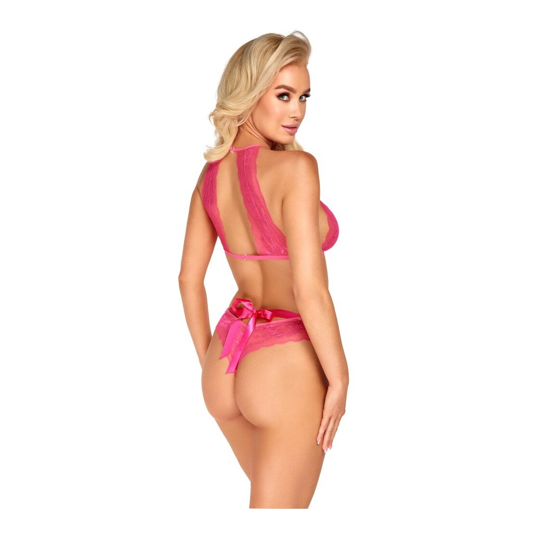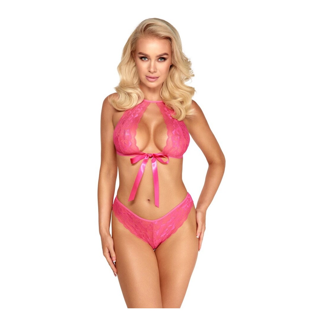 Set giocoso e sfacciato di kissable composto da reggiseno e slip morbidi con seducenti fiocchi in raso da annodare - sul reggiseno elegante sul davanti, sugli slip nello scollo a V sopra lo slip. Realizzato interamente in pregiato pizzo rosa - morbido ed elastico su tutto il corpo per il massimo comfort. Reggiseno sul collo e sulla schiena con chiusura a gancetto.