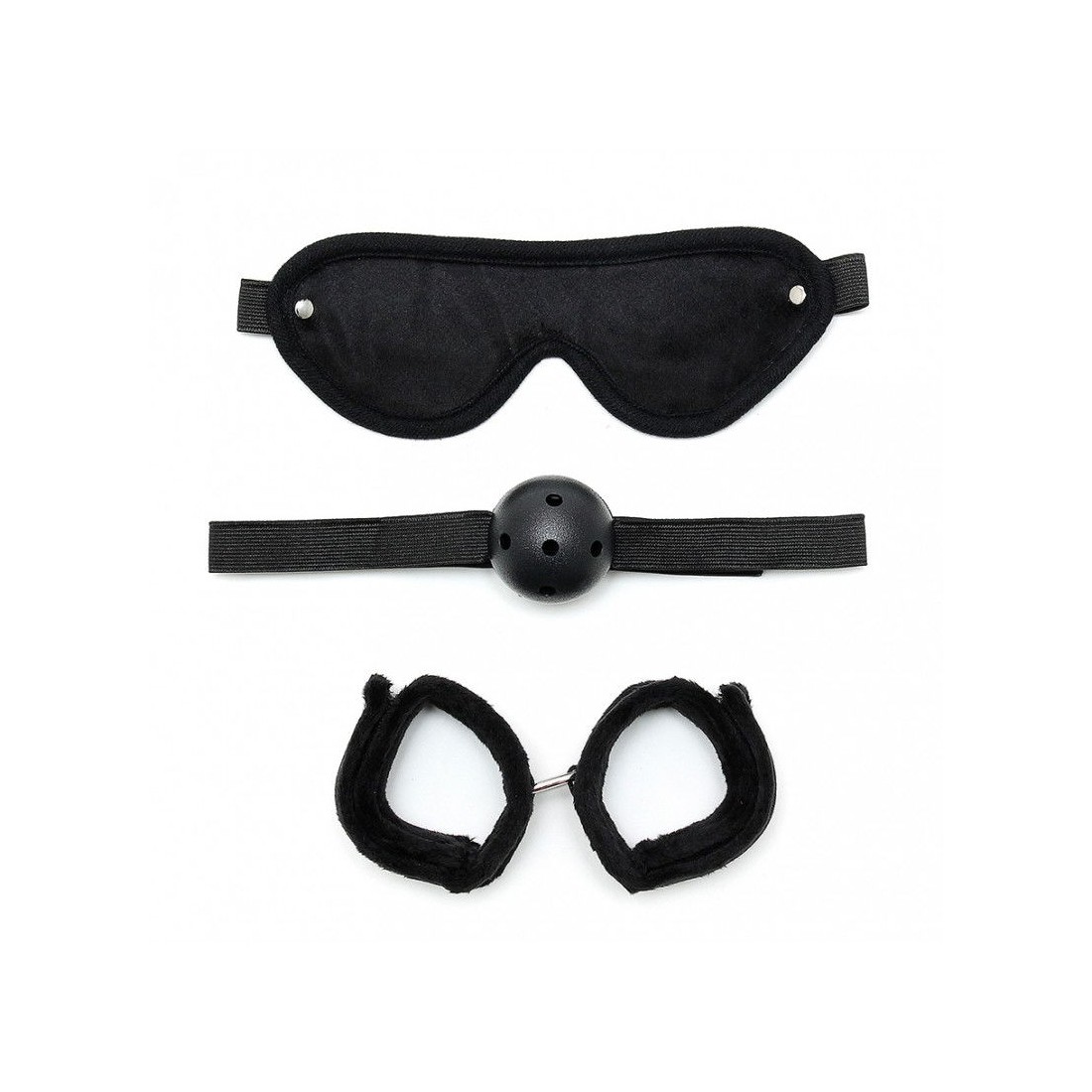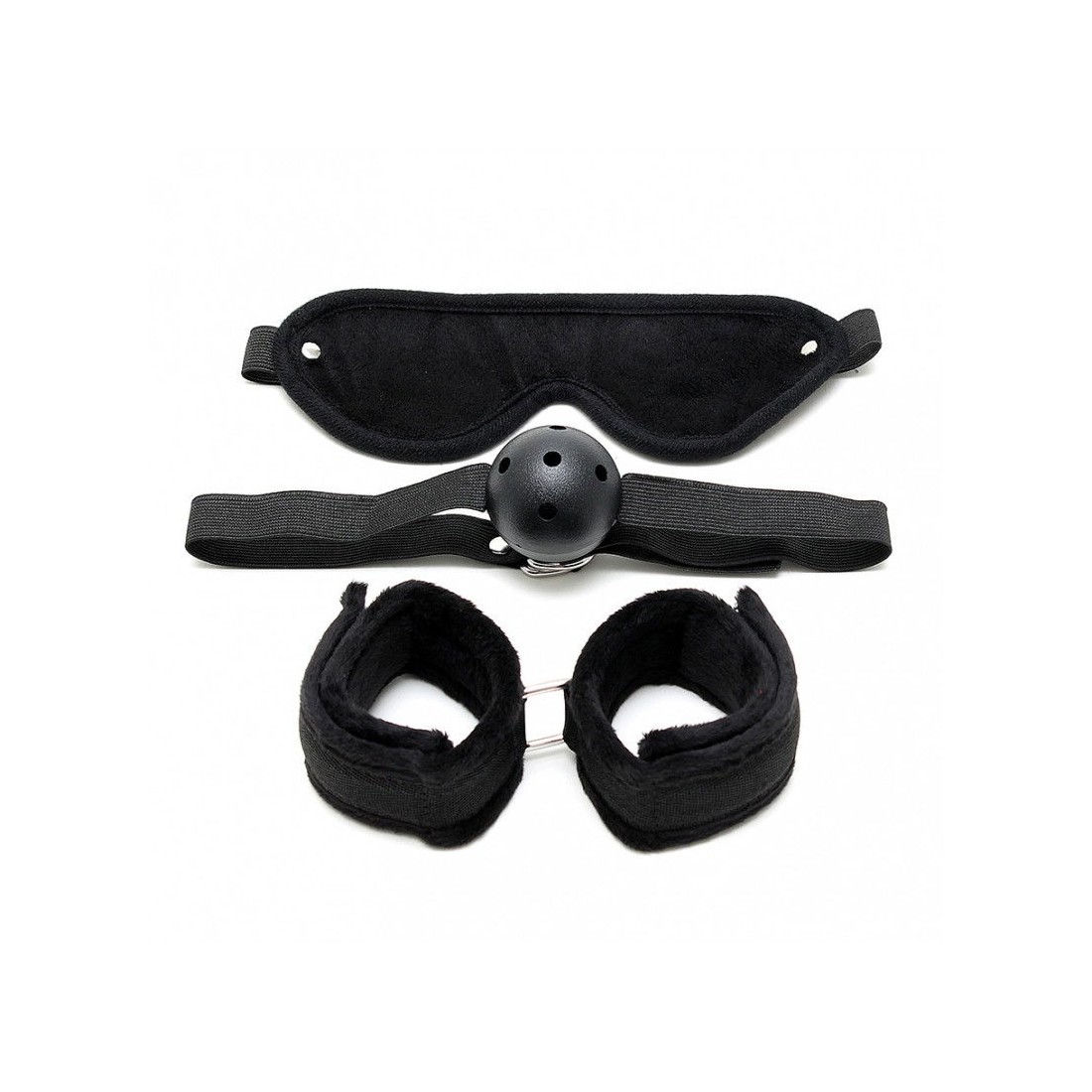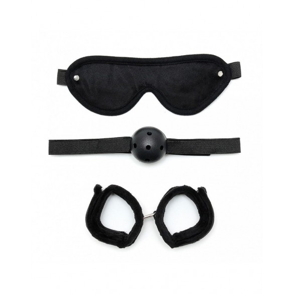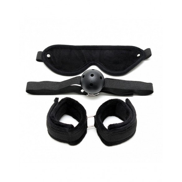 Set di bondage morbido contenente: maschera + bavaglio + polsini con chiusura in velcro.