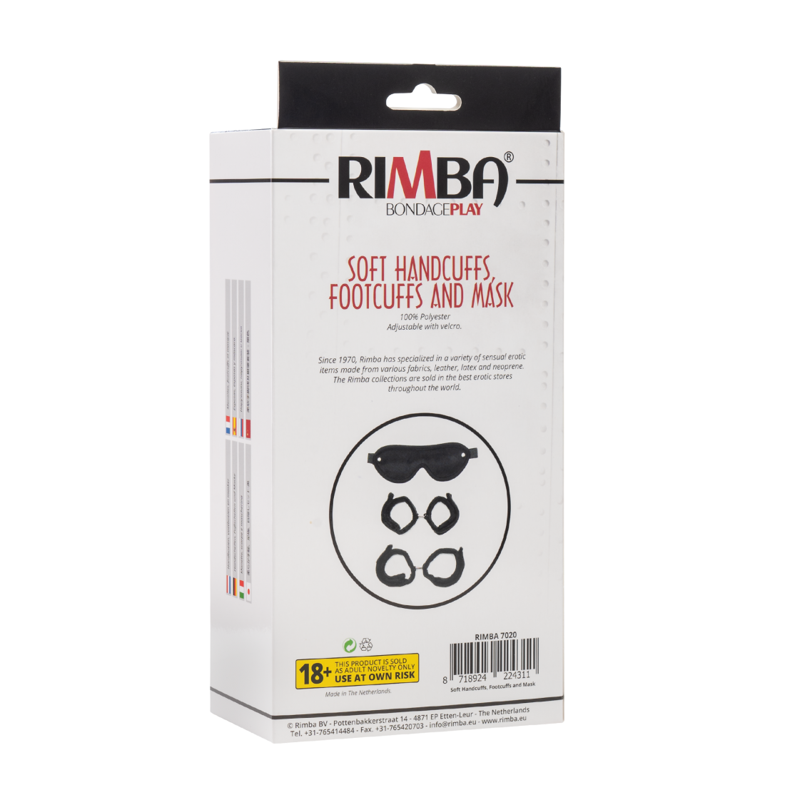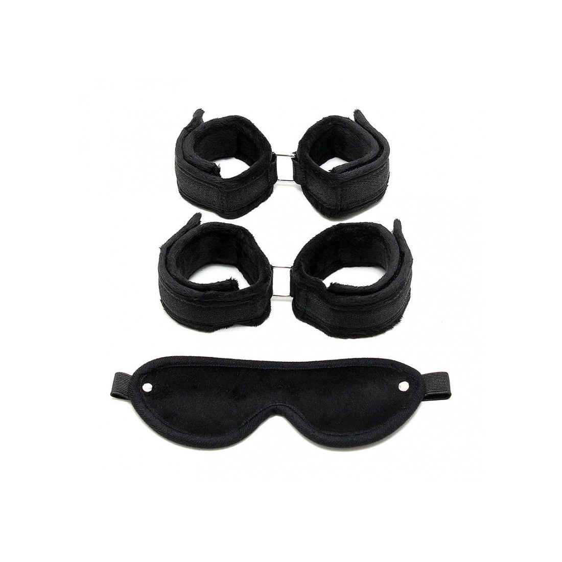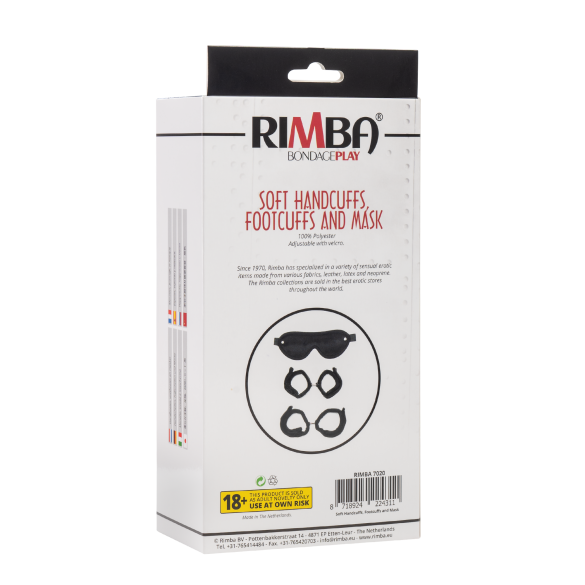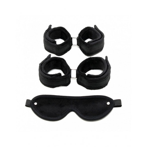 Questo set per bondage morbido contiene: maschera + manette + manette per i piedi.