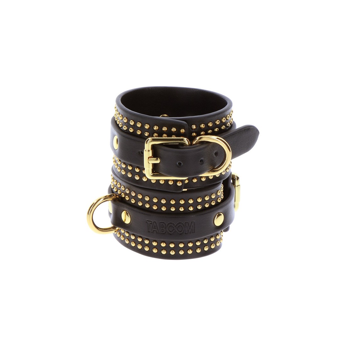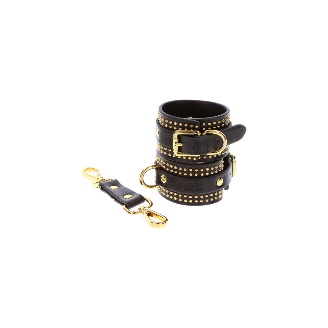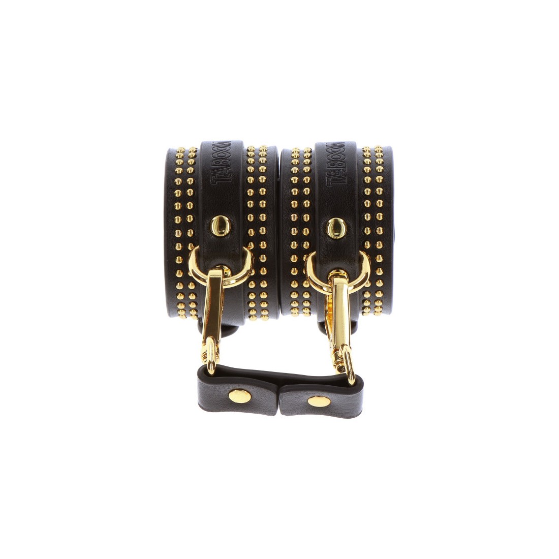 Scopri l'apice dell'eleganza e della sensualità con questi TABOOM Ankle Cuffs. Progettati per chiunque desideri abbracciare il mondo del bondage e del BDSM con stile, questi polsini sono la perfetta fusione di fascino e raffinatezza. Eleganti in nero con dettagli opulenti in oro, questi polsini per caviglie emanano un'aura di lusso semplicemente irresistibile. Il contrasto accattivante dei colori non aggiunge solo un tocco di glamour, ma enfatizza anche il potere e la passione che derivano dall'esplorazione dei tuoi desideri. Offrono una vestibilità sicura e regolabile per adattarsi a diverse dimensioni della caviglia, garantendo un'esperienza appagante per tutti. Abbraccia l'arte del bondage in modo che incarna grazia e fascino con questi Polsini per Caviglie TABOOM.