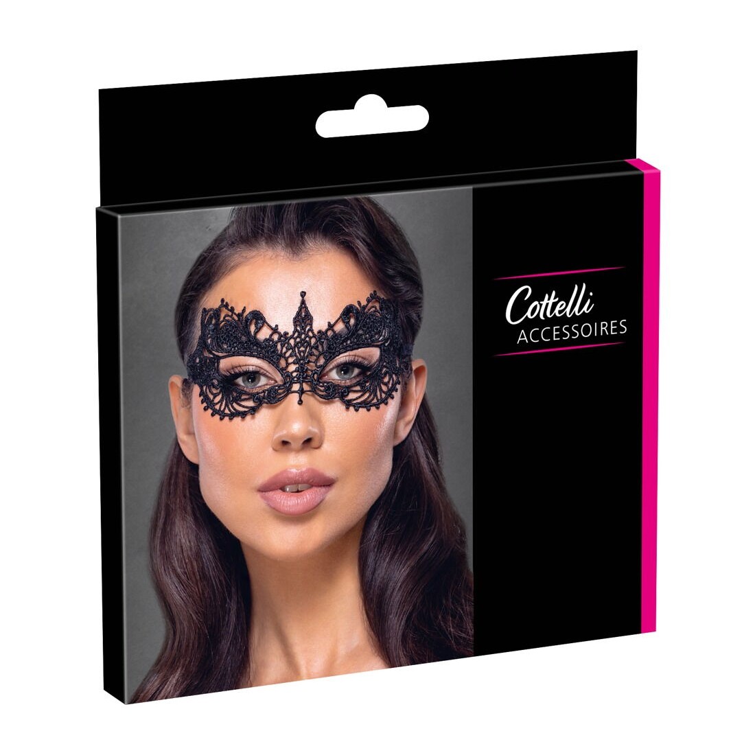 Bellissima maschera nera per gli occhi di Cottelli ACCESSOIRES con ricami delicati e di alta qualità intorno alle aperture per gli occhi. Con nastri di pizzo da annodare. Morbida e accogliente per una perfetta vestibilità e una sensazione di comfort.