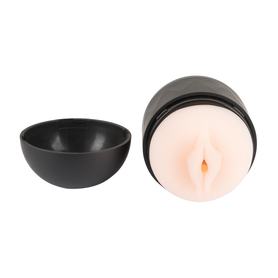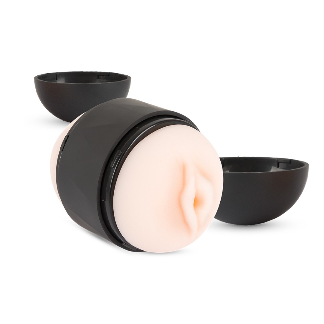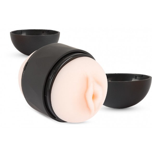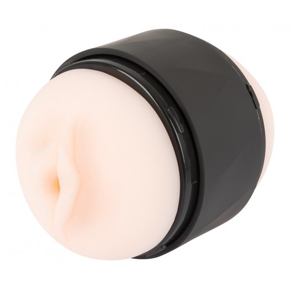Masturbatore aperto su due lati Double Stroker di Rebel con apertura della vagina e dell'ano. Il manicotto realisticamente morbido ha una superficie intensamente ruvida all'interno. La custodia può essere aperta su entrambi i lati e il manicotto è rimovibile, il che permette una pulizia igienica e veloce. Le aperture su entrambi i lati, insieme alla comoda e salda presa al centro del manicotto, danno una buona tenuta e permettono l'uso durante i pompini. I due tappi proteggono il manicotto da polvere e sporcizia e il masturbatore può essere conservato in modo discreto.