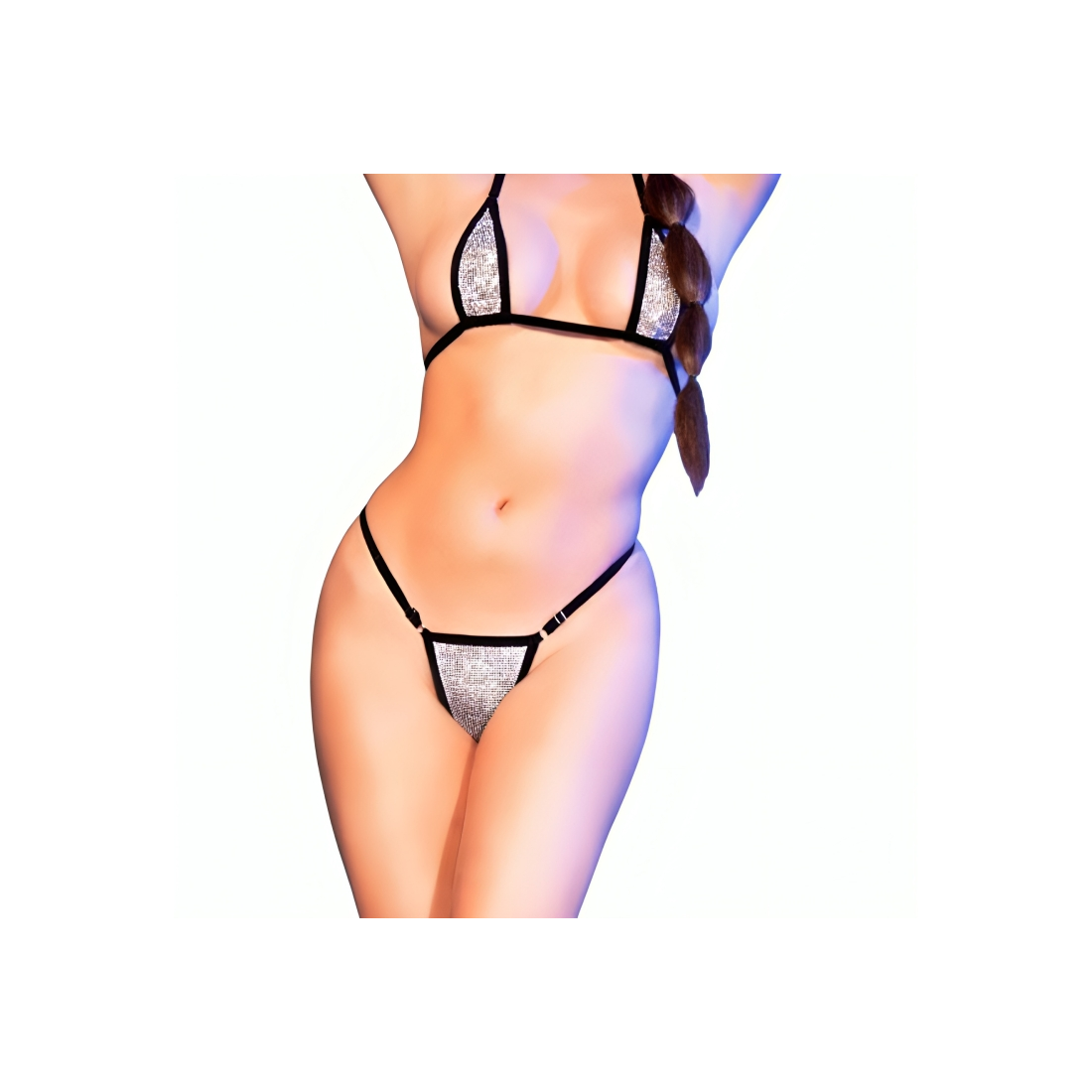 CR-4660 Set reggiseno/mini bikini nero/argento con cristalli lucenti