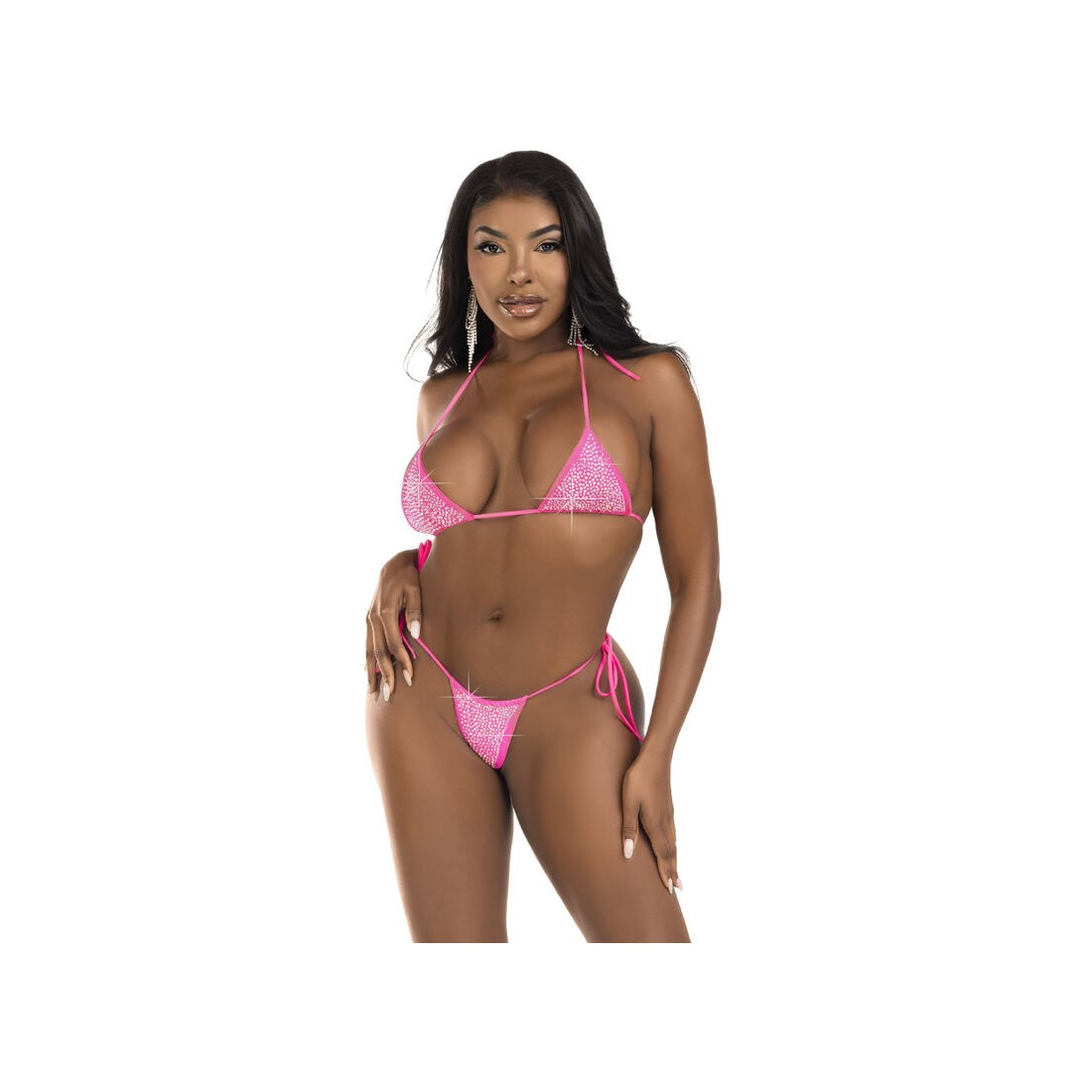 La parte superiore del bikini presenta un design classico con un tocco di lusso grazie agli strass posizionati strategicamente. Questi dettagli scintillanti aggiungono un tocco di raffinatezza e glamour, elevando immediatamente lo stile dell'outfit. Inoltre, la vestibilità lusinghiera della parte superiore garantisce un supporto confortevole e una silhouette lusinghiera.