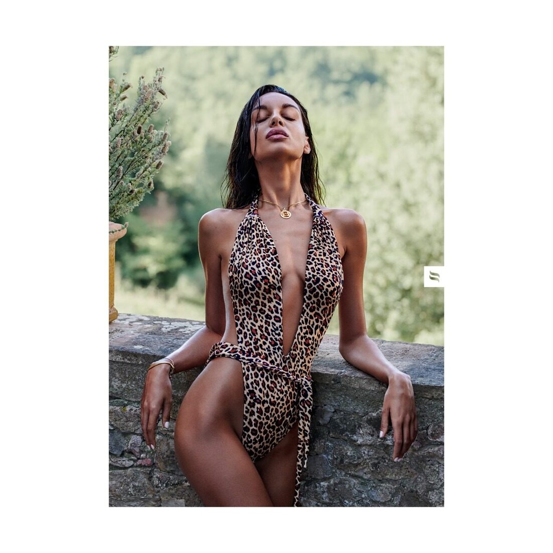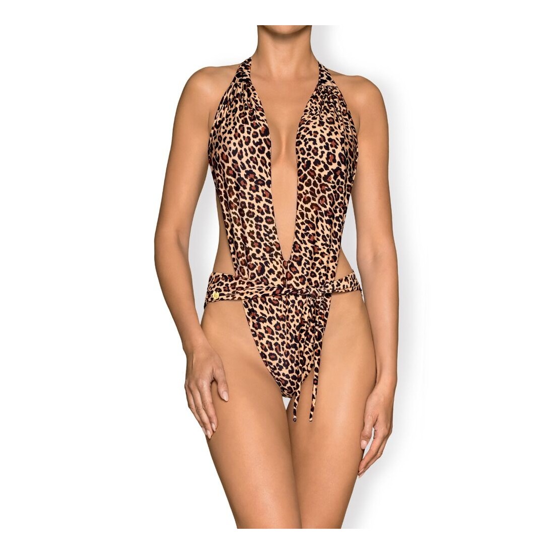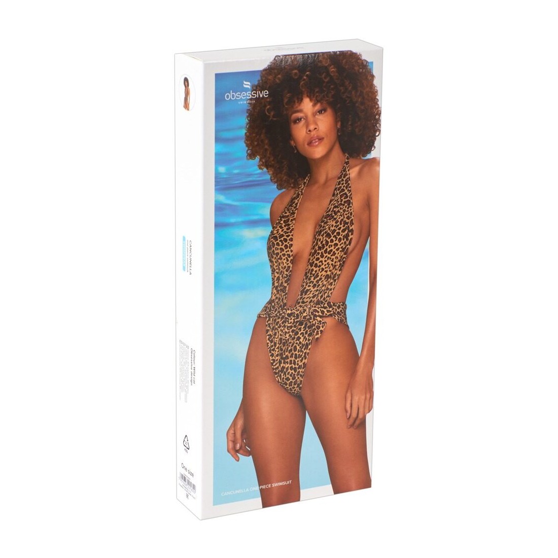 Costume da bagno Cancunella della serie Swimwear 2022 di Obsessive in look leo di tendenza. Taglio basso sul davanti fino all'ombelico e può essere legato in vita. L'halterneck può anche essere legato, lasciando la schiena completamente libera! I tagli alti sulle gambe creano gambe extra lunghe. Il morbido materiale elastico assicura una perfetta vestibilità e un elevato comfort quando si nuota, si fa il bagno e si prende il sole.