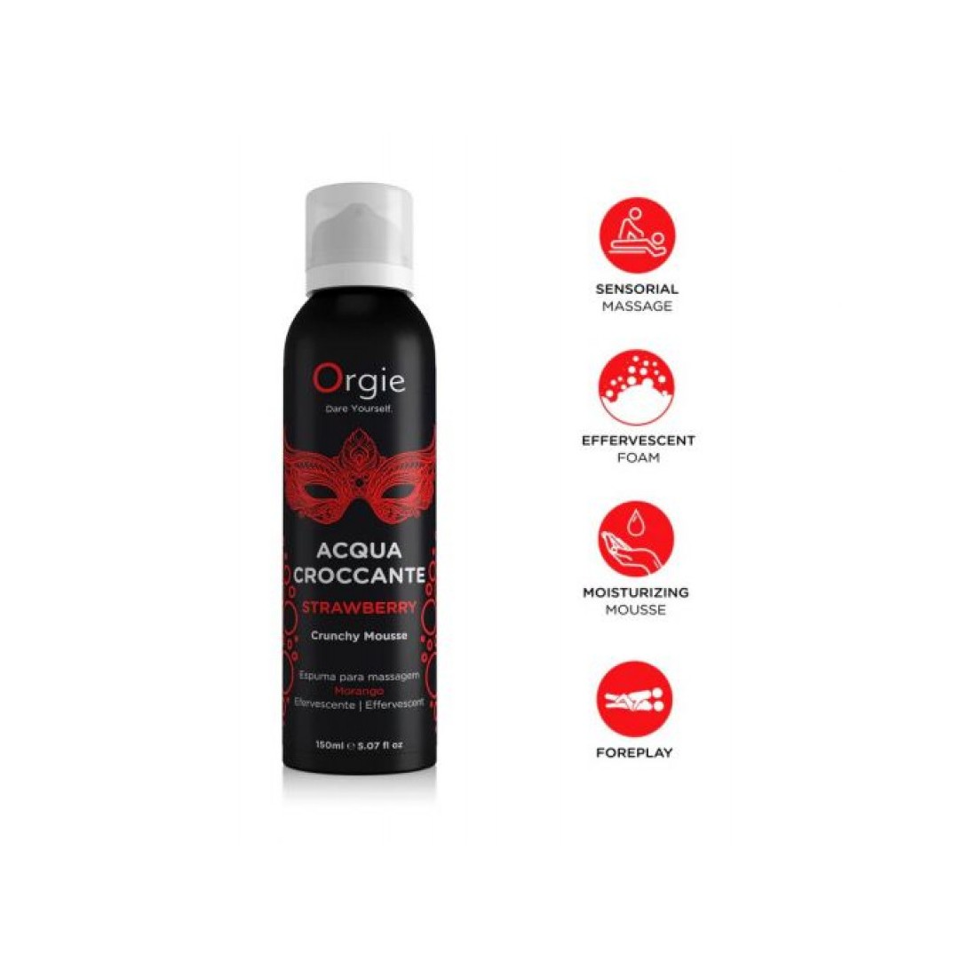 Schiuma Croccante Strawberry è una schiuma idratante con un potente effetto effervescente e con un delizioso profumo di fragola. Un prodotto esclusivo di Orgie Company, un'azienda capace di stupire con i suoi prodotti esotici e di alta qualità. Questa schiuma è rinfrescante ed effervescente e, con le sue bollicine esplosive, renderà ogni massaggio un divertente ed entusiasmante viaggio verso l'eccitazione. Prodotto clinicamente e dermatologicamente testato. Pratico formato da 150 ml con dosatore. Tenere il prodotto fuori dalla portata dei bambini e conservarlo in un luogo fresco ed asciutto. Si consiglia di non applicare il prodotto sulla pelle irritata o lesa e di sciacquare abbondantemente con acqua in caso di irritazione o contatto con gli occhi. Non ingerire. Solo per uso esterno.