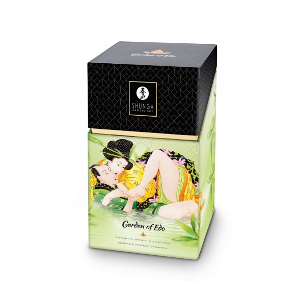 Tutti i prodotti The Garden of Edo contengono ingredienti biologici accuratamente selezionati e certificati. Contenuto: olio da massaggio 250 ml, olio afrodisiaco baci intimi 100 ml, crema lubrificante TOKO Organica 165 ml, olio sensibilizzante Lotus Noir 60 ml, Mini candela da massaggio 30ml