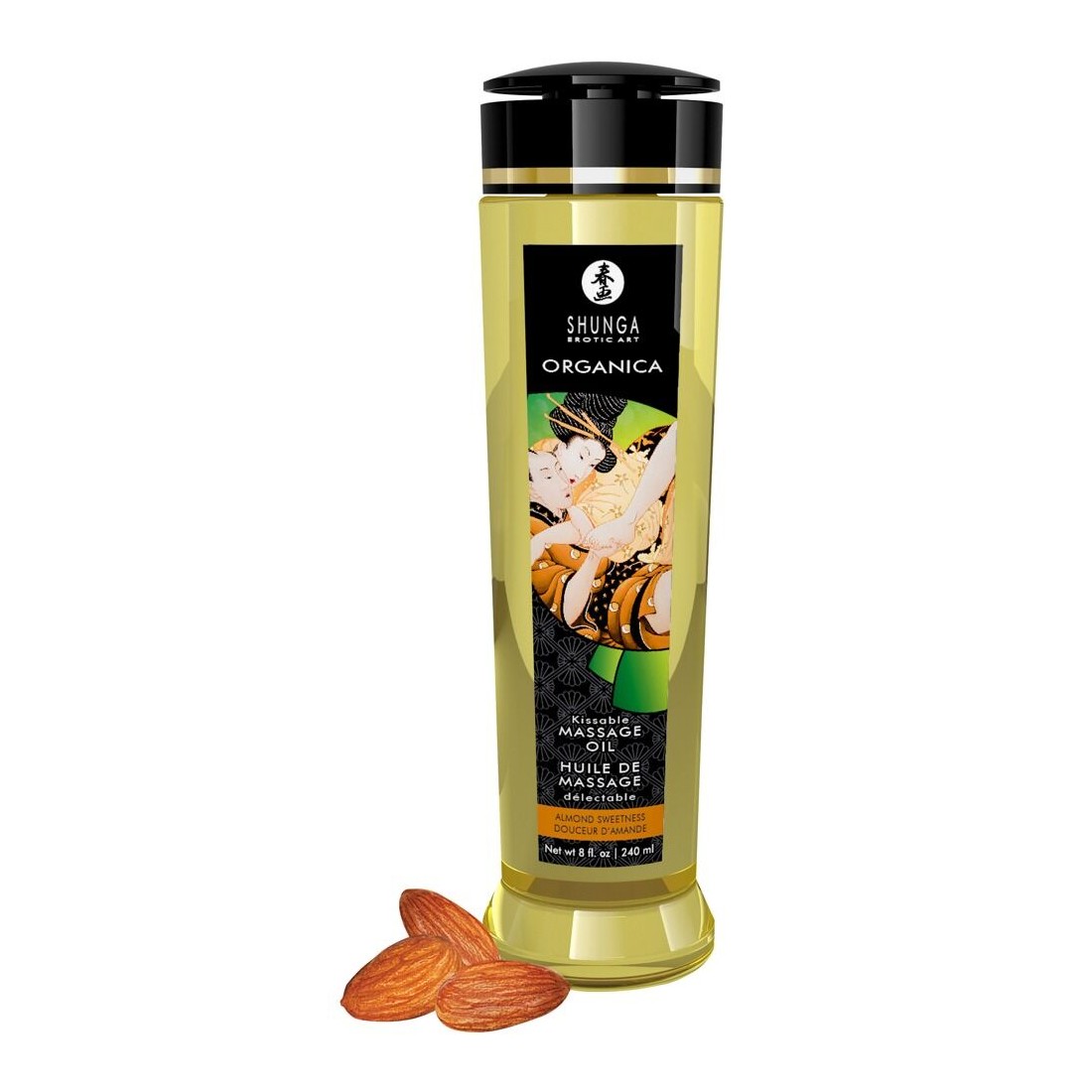 Lussuoso olio da massaggio Organica Kissable Almond Sweetness di Shunga con un delicato aroma di mandorla che risveglia i sensi durante il massaggio del partner e invita a baciarsi e a mordicchiarsi. L'olio da massaggio vegano è realizzato con oli naturali spremuti a freddo al 100% e contiene vitamina E che cura la pelle. Scivola delicatamente e facilmente sulla pelle. Scivola delicatamente e facilmente sulla pelle senza lasciare una sgradevole sensazione di unto e residui. Al contrario, lascia la pelle morbida come la seta! Inoltre, è molto economico: il contenuto è sufficiente per molti massaggi sensuali e appassionati su tutto il corpo.