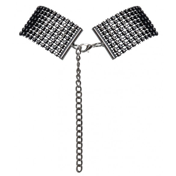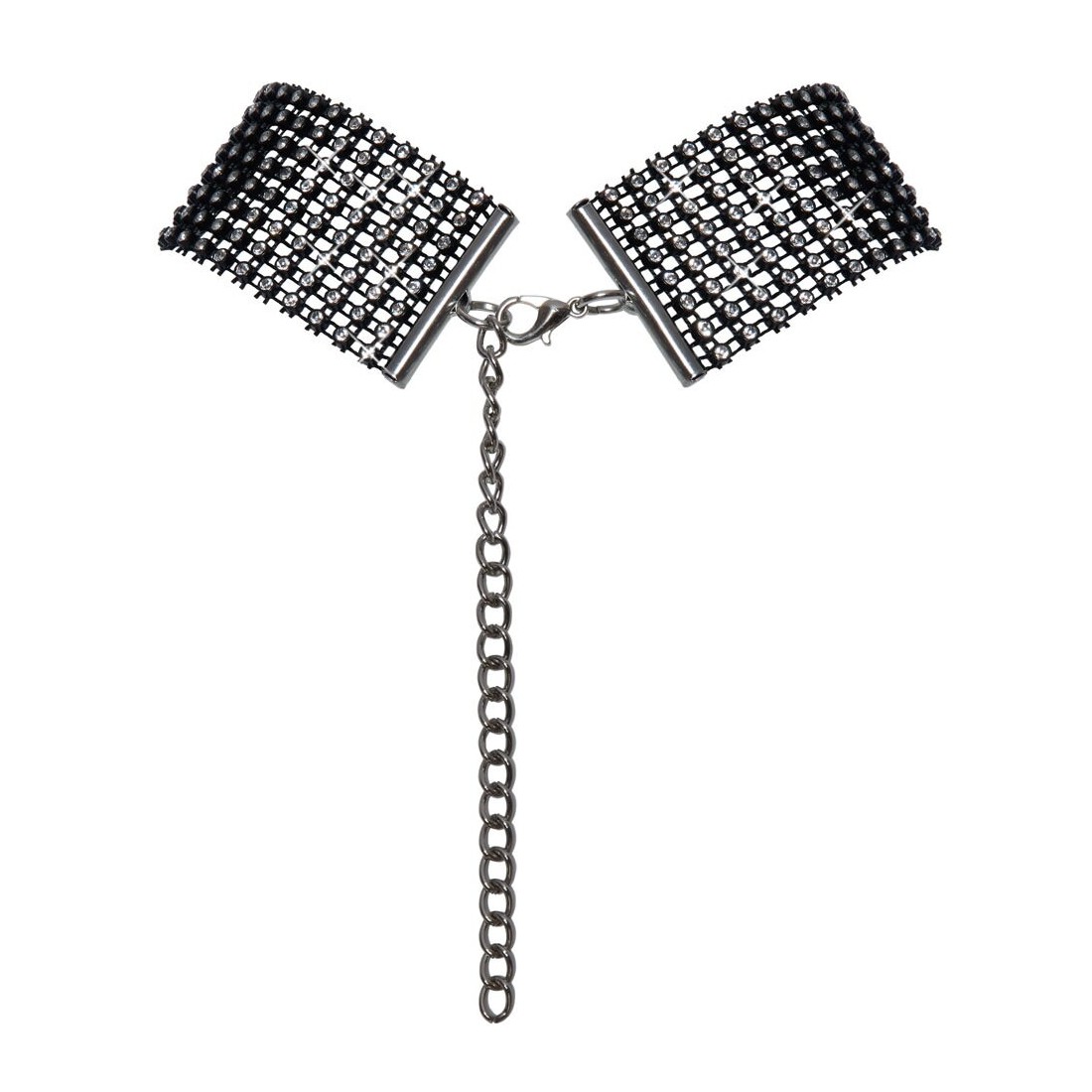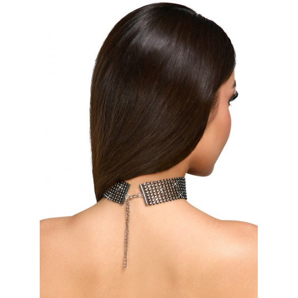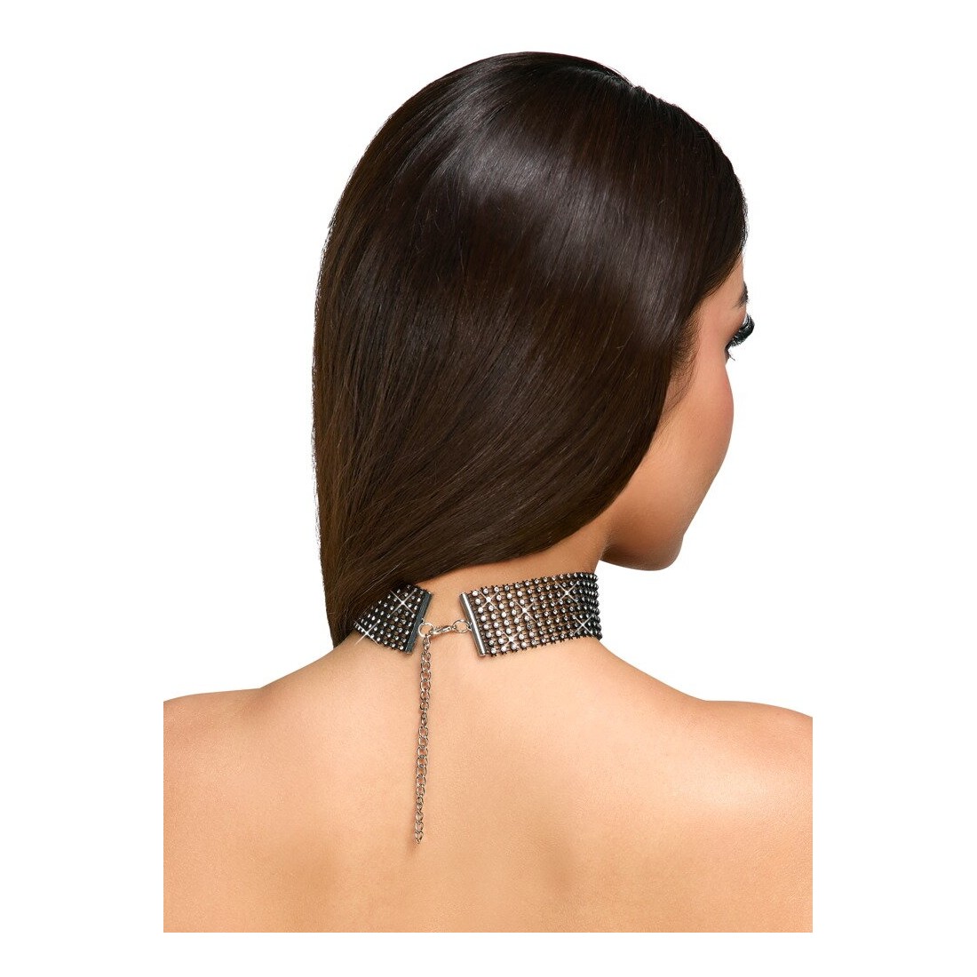 Girocollo nero cangiante di Cottelli ACCESSOIRES tempestato di innumerevoli strass. Larghezza/altezza di 3 cm. Con chiusura a moschettone regolabile sulla nuca.