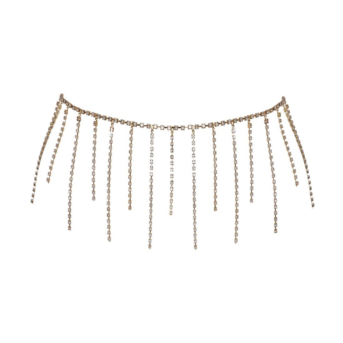 Catena da pancia color oro con catene di strass oscillanti sul davanti e sui lati. unica