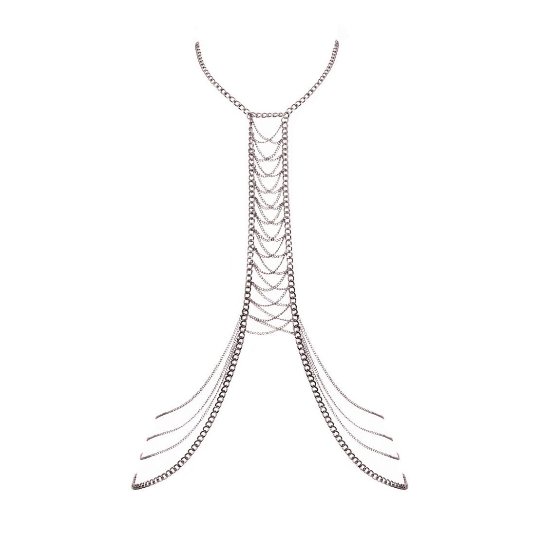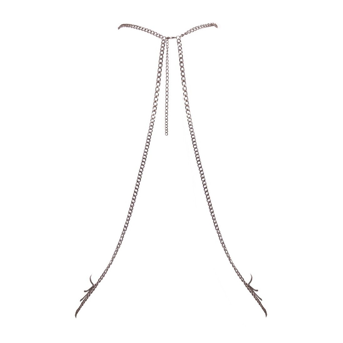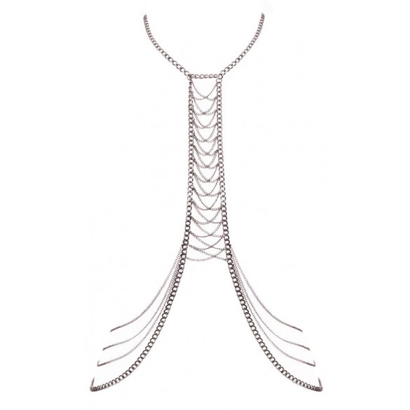 Catena per il corpo color argento di Cottelli ACCESSOIRES con sontuosa catena tra i seni e catena sui fianchi. Regolabile individualmente e personalizzabile al collo con chiusure a moschettone. Indossati da soli come lingerie per un aspetto erotico o abbinati con stile a costumi da bagno e abiti aderenti, questi gioielli per il corpo glamour attirano sempre l'attenzione!
