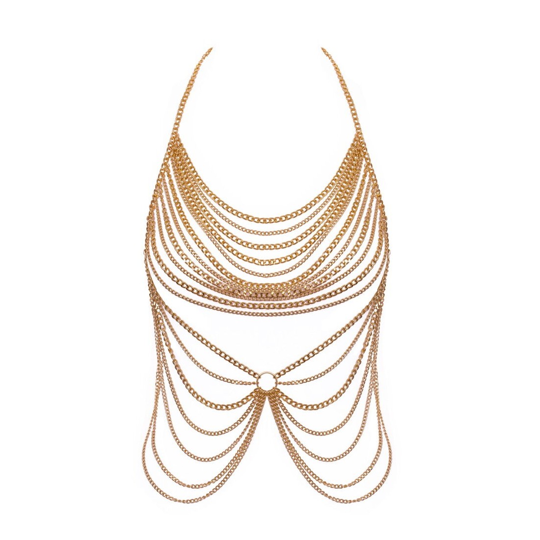 Catena corpo color oro con Lussuose finiture a catena su seno e pancia