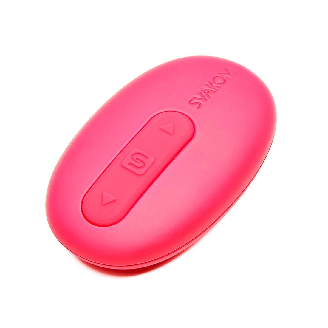 Ricaricabile, impermeabile vibro uovo vibro con texture morbida al tatto setosa e morbida al tatto, compreso il cinturino di recupero. Con 5 modalità di vibrazione silenziosa in 5 diverse intensità ciascuna. La modalità intelligente SVAKOM supplementare imita le frequenze di vibrazione dei rapporti sessuali fino all'orgasmo. Controllabile con la semplice pressione di un tasto o con il telecomando in dotazione.