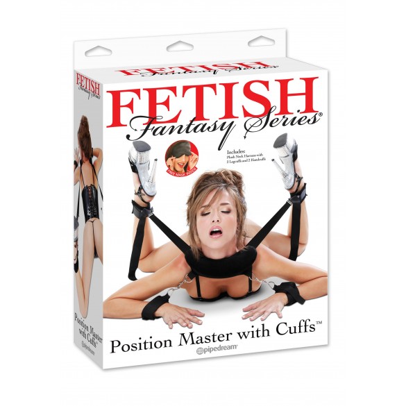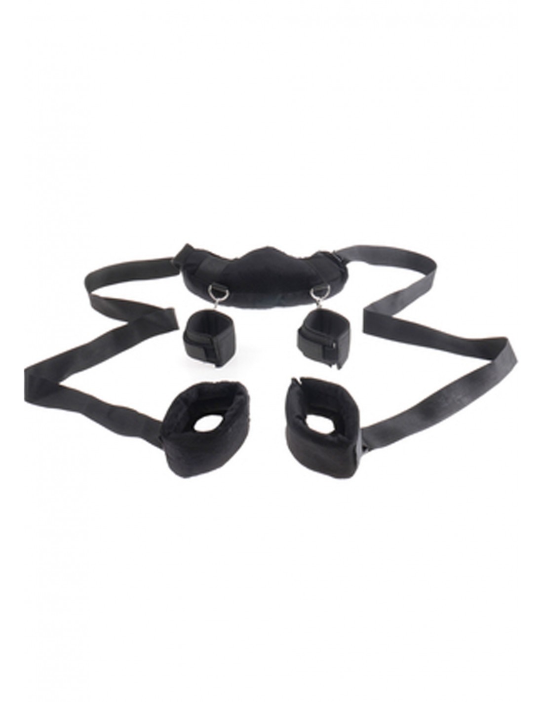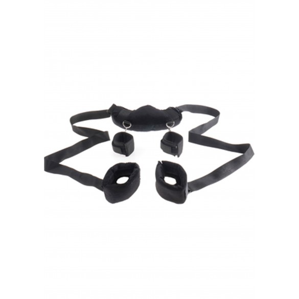Set per giochi bondage con cavigliere polsiere e la parte che cinge il collo imbottite. Pu essere usato sia in posizione supina che prona. La lunghezza delle cinture che vanno alle caviglie regolabile. L'utilizzo facile e divertente basta avere un p di fantasia.