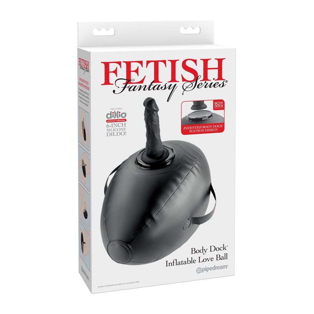 Cuscino d'amore ovale gonfiabile Body Dock Palla d'amore gonfiabile della serie Fetish Fantasy con supporto brevettato Body Dock per il dildo Dillio Platinum con base a ventosa. Qualsiasi altro giocattolo con ventosa (ad esempio vibratore, masturbatore) può essere facilmente e saldamente posizionato sulla piastra di aggancio. Grazie alle robuste impugnature laterali, la Love Ball offre una presa sicura, sia che la si cavalchi sia che la si tenga in mano. Le dimensioni ideali assicurano un sostegno confortevole e un eccitante rimbalzo.