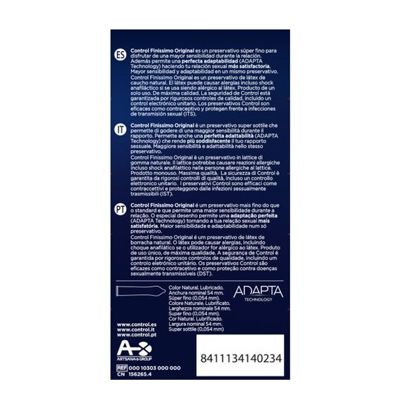 Il miglior preservativo di Control. Il suo spessore ultrasottile consente di godere facilmente di un'estrema sensibilità, mentre la sua forma ergonomica favorisce un'adattabilità ottimale. Realizzato in lattice, serbatoio e lubrificato.