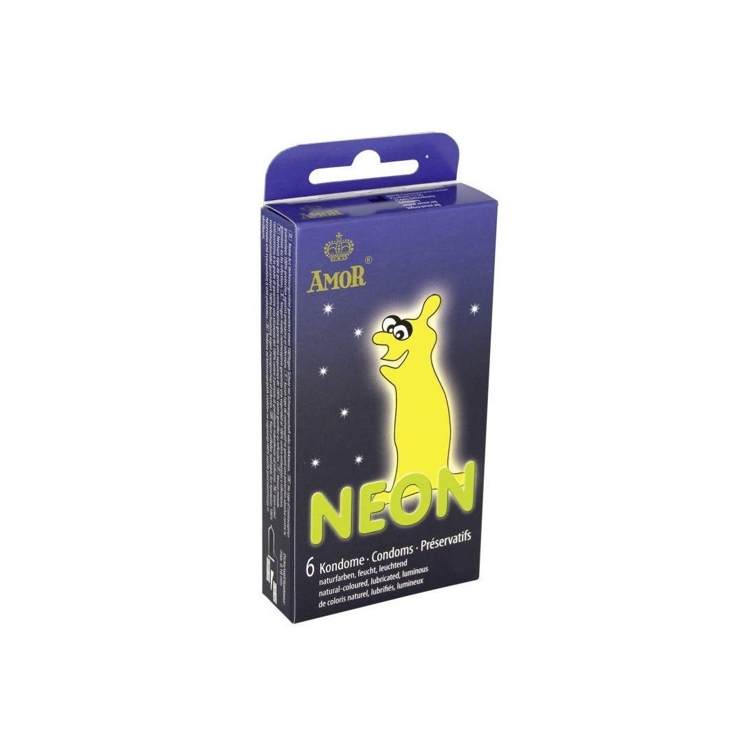 Materiale: Lattice.Colore: Trasparente.Lunghezza: 18 cm.Diametro: 5.2 cm.Contenuto: 6 Pz.Neon di Amor sono profilattici in lattice di colore naturale e serbatoio lisci lubrificati e luminescenti. La loro particolarit sta proprio nel fatto che si illuminano al buio.