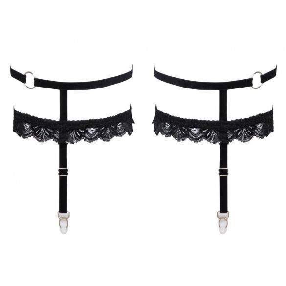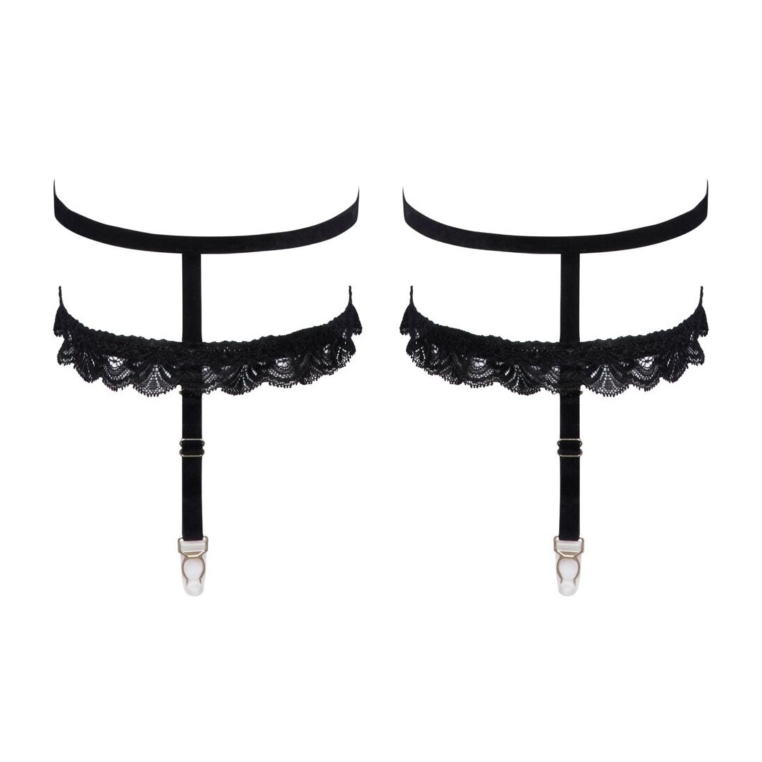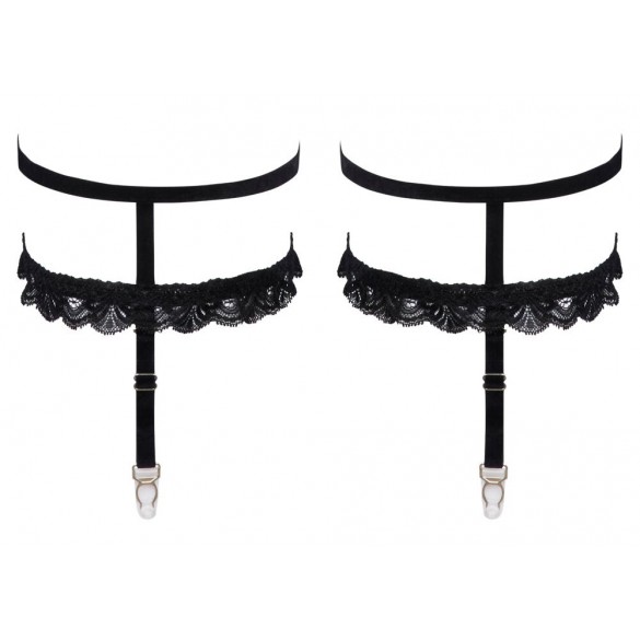 Giarrettiera nera doppia di Cottelli ACCESSOIRES con bretelle staccabili. Realizzata in morbido velluto con anelli argentati e pizzo fine. Elasticizzata su tutto il corpo per una tenuta perfetta. Le bretelle sono regolabili in lunghezza. 1 paio.