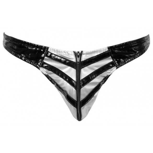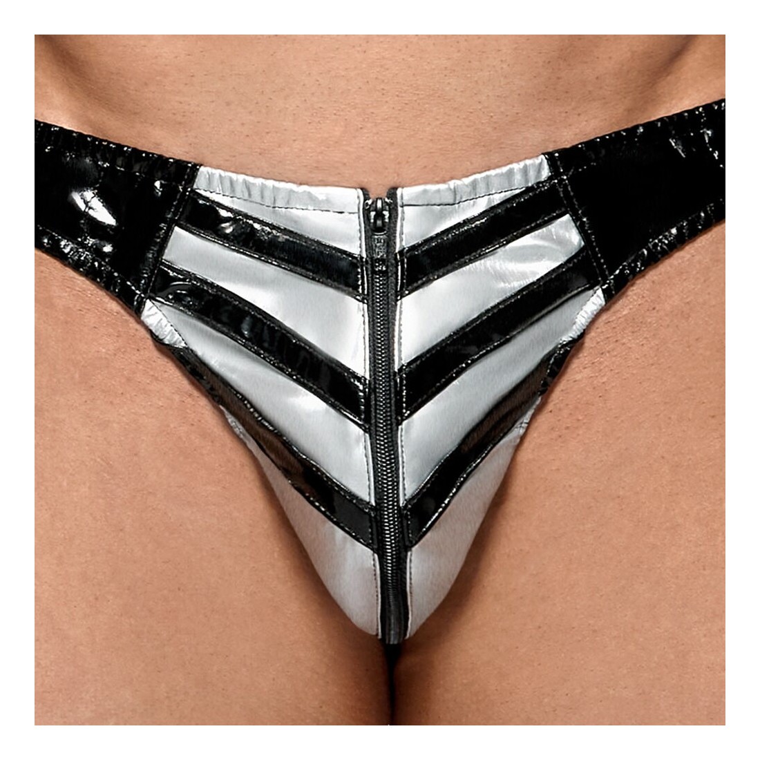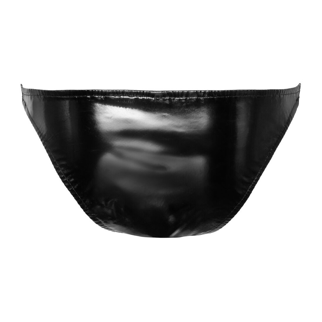 Slip in vernice di Black Level in nero lucido. Marsupio argentato a strisce con cerniera. Vita e polsini elasticizzati per una vestibilità perfetta e confortevole.