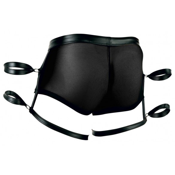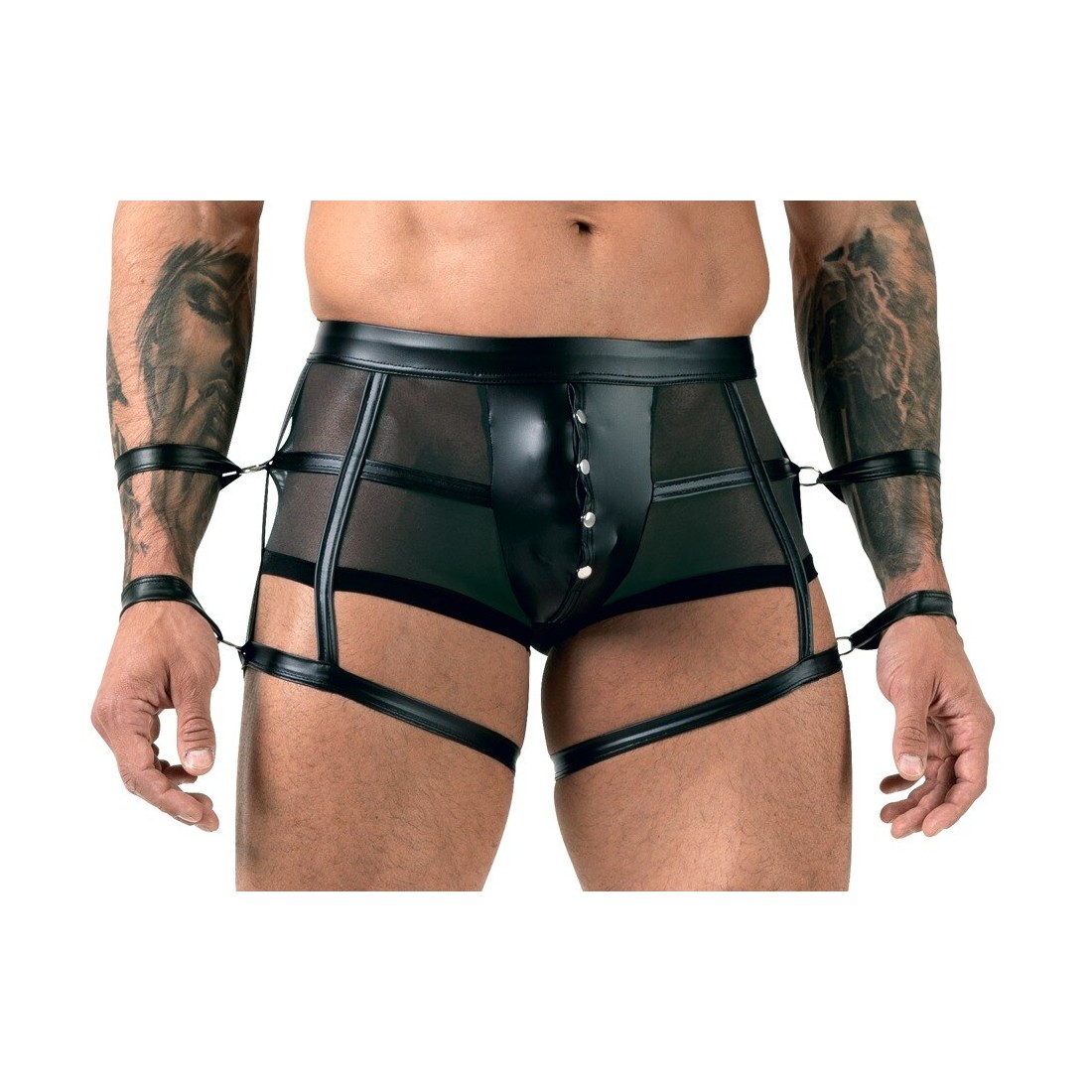 Pantaloni neri di Svenjoyment Bondage in powernet trasparente in combinazione con un nobile look opaco. Elastico e coccoloso per un alto comfort di vestibilità. Astuccio con pratici bottoni a pressione erotici da aprire. Due anelli su ogni lato con cinturini per mani/braccia - uno sui pantaloni, uno sulla coscia. Cinghie alla caviglia rimovibili con chiusura in velcro regolabile.