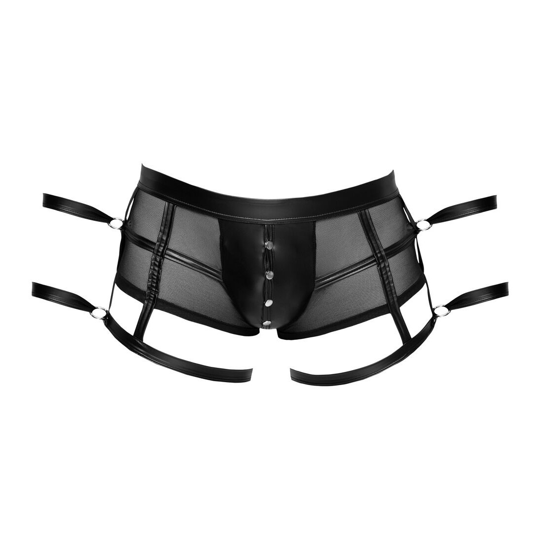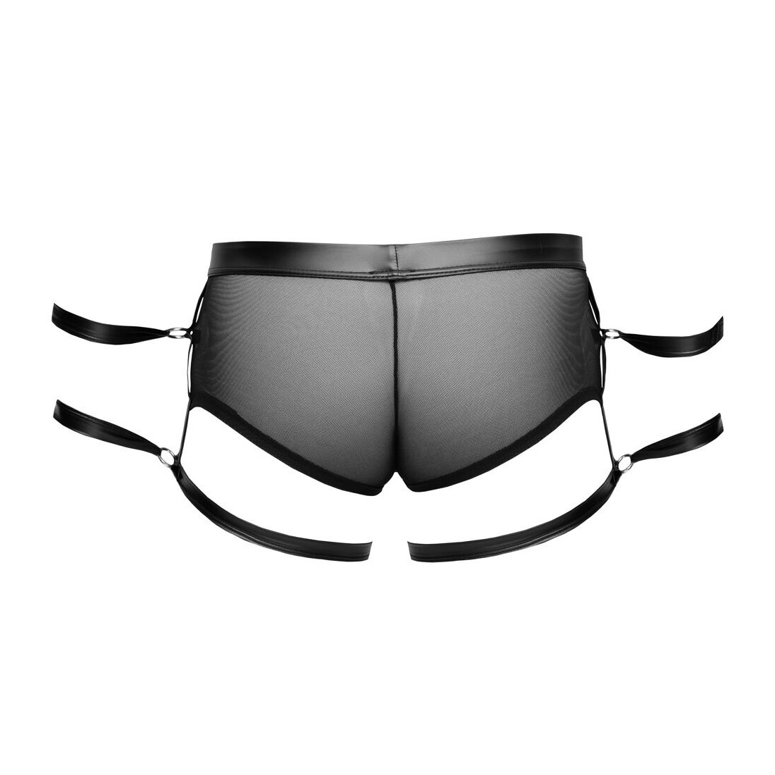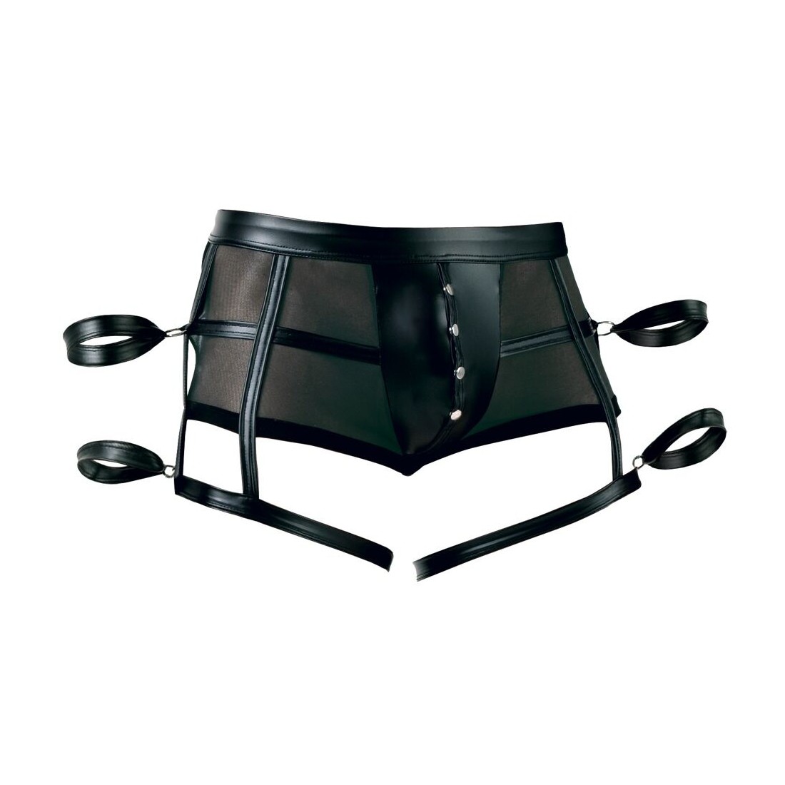Pantaloni neri di Svenjoyment Bondage in powernet trasparente in combinazione con un nobile look opaco. Elastico e coccoloso per un alto comfort di vestibilità. Astuccio con pratici bottoni a pressione erotici da aprire. Due anelli su ogni lato con cinturini per mani/braccia - uno sui pantaloni, uno sulla coscia. Cinghie alla caviglia rimovibili con chiusura in velcro regolabile.