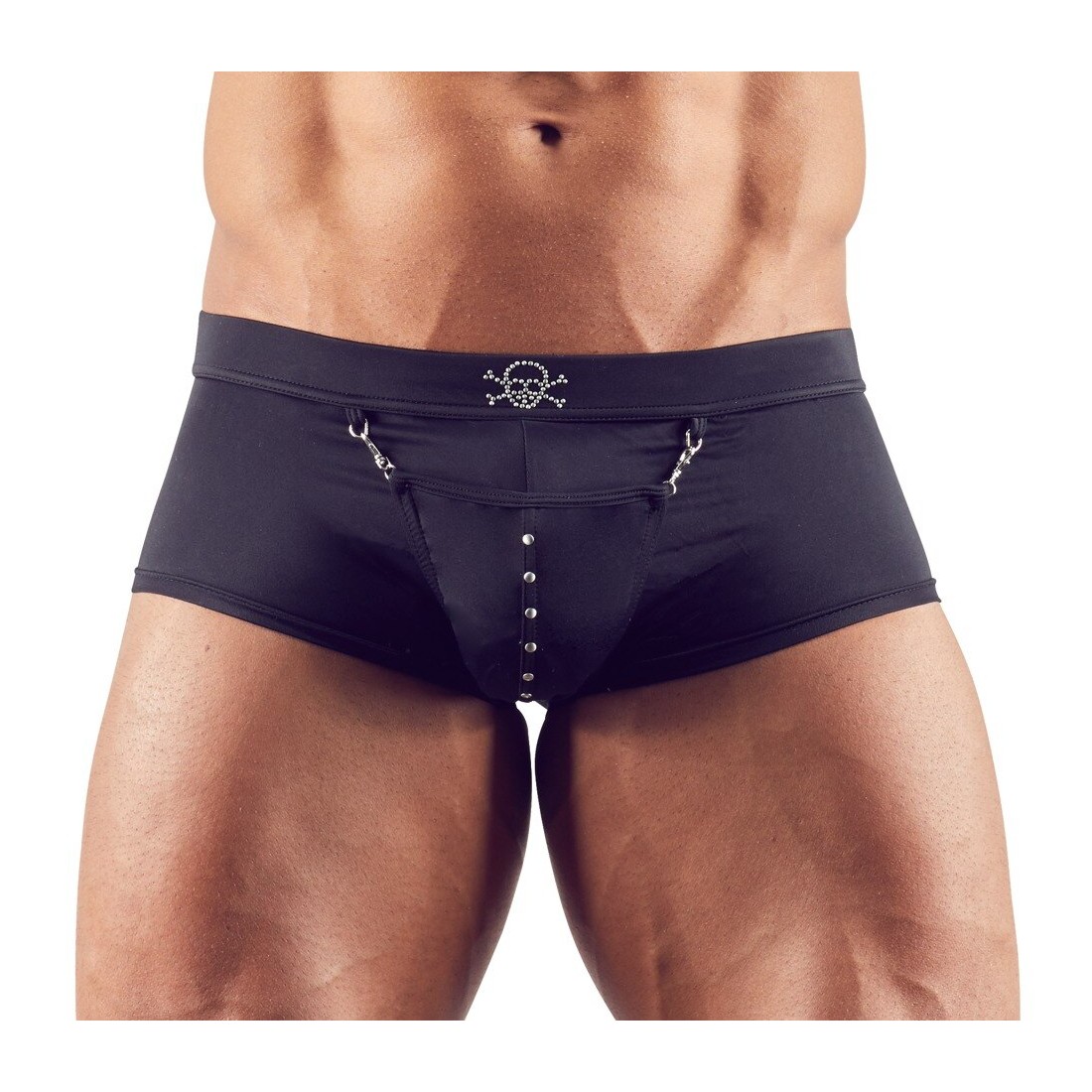 Pantaloni da pirata aderenti alla figura con marsupio e moschettone. Con funzione swell per un rigonfiamento anteriore impressionante e autentico teschio rivettato sulla cintura. Perfetto per avventure selvagge e giochi di ruolo hot.