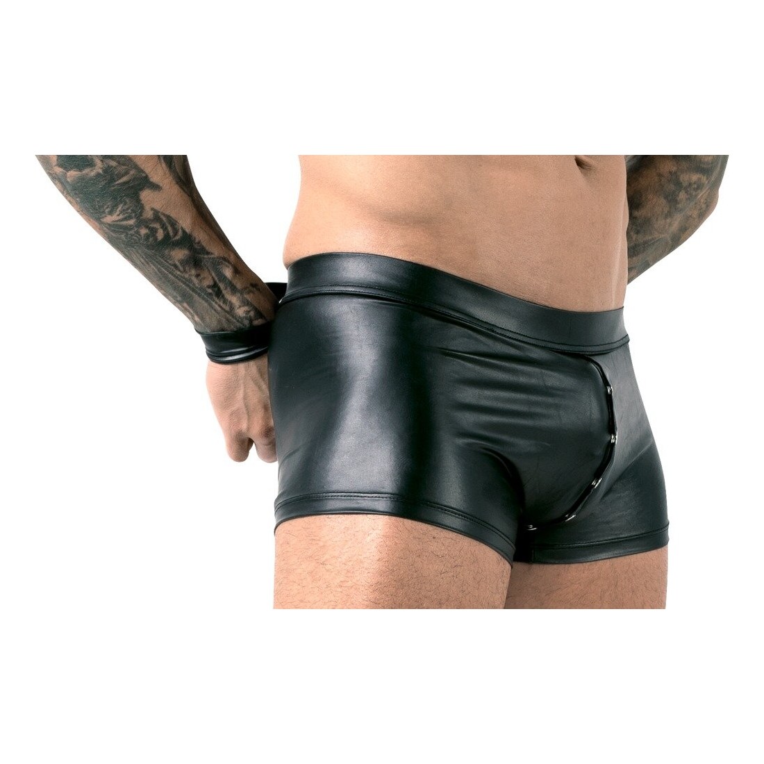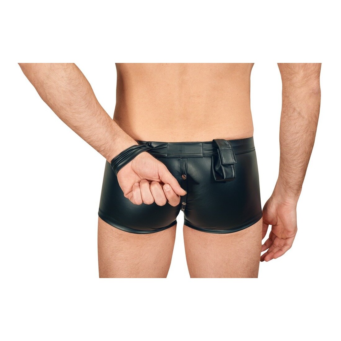 Pantaloni neri di Svenjoyment Bondage in un nobile look opaco. Elastico e coccoloso per un alto comfort di vestibilità. Con chiusura a bottoni a pressione dal davanti, attraverso il cavallo e sopra il fondo. Sul retro, le due cavigliere chiuse possono essere attaccate alla cintura per fissare le mani sulla schiena. I cinturini alla caviglia in look opaco hanno ciascuno una chiusura in velcro regolabile.
