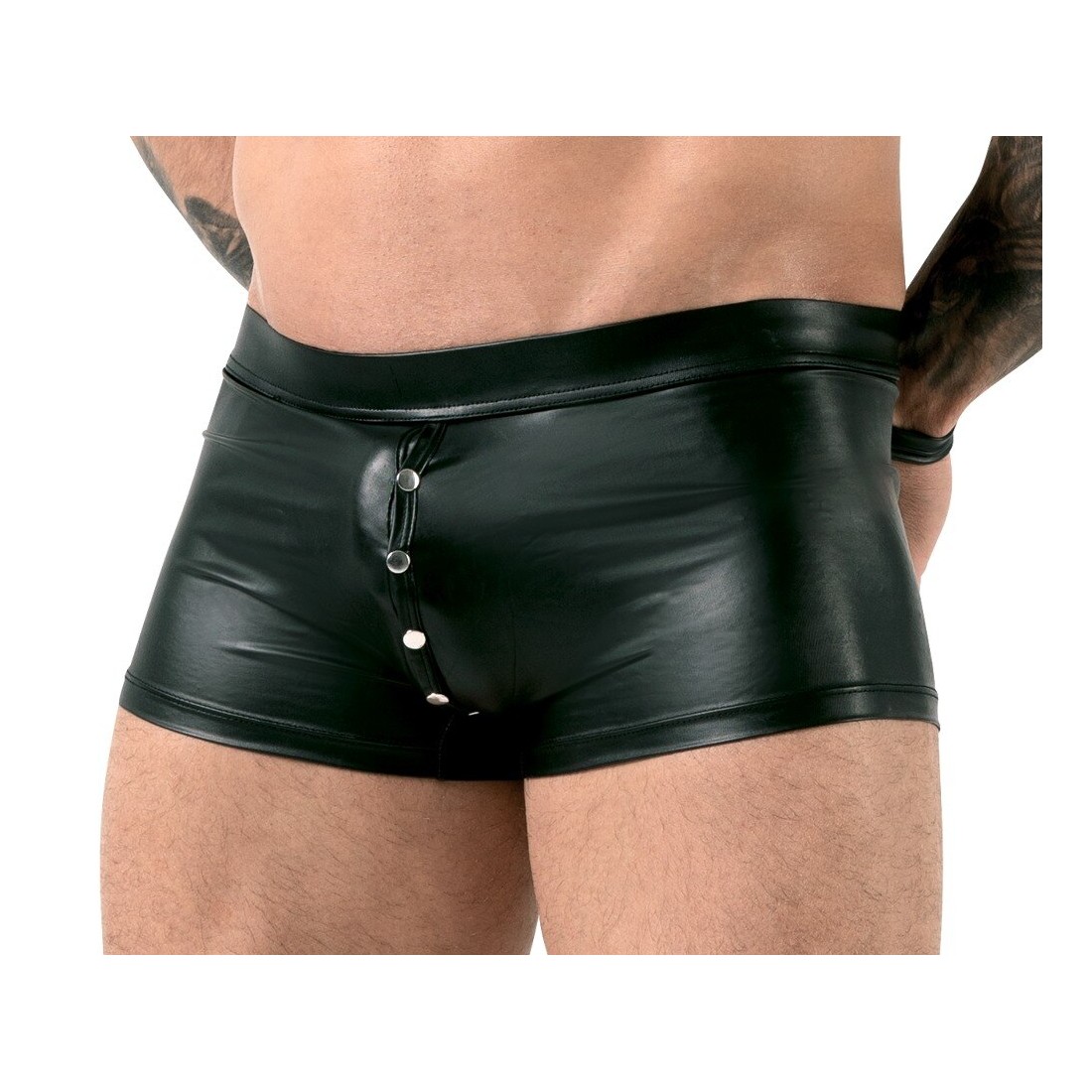 Pantaloni neri Bondage in un nobile look opaco con chiusura a bottoni a pressione dal davanti L